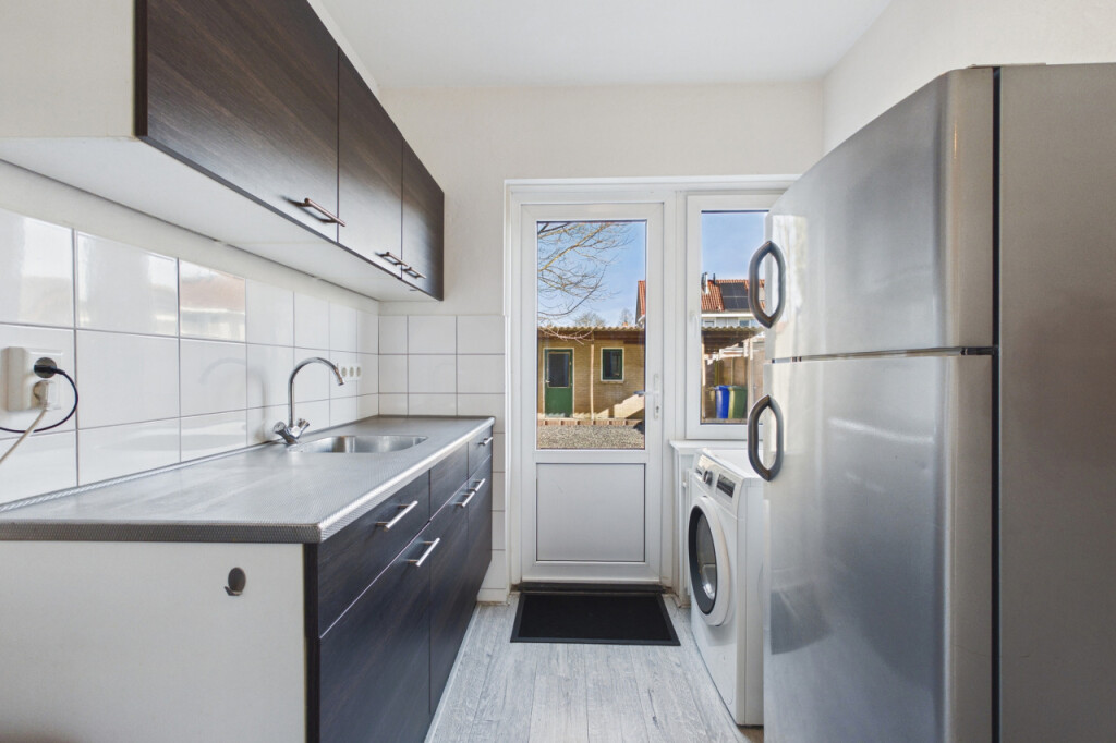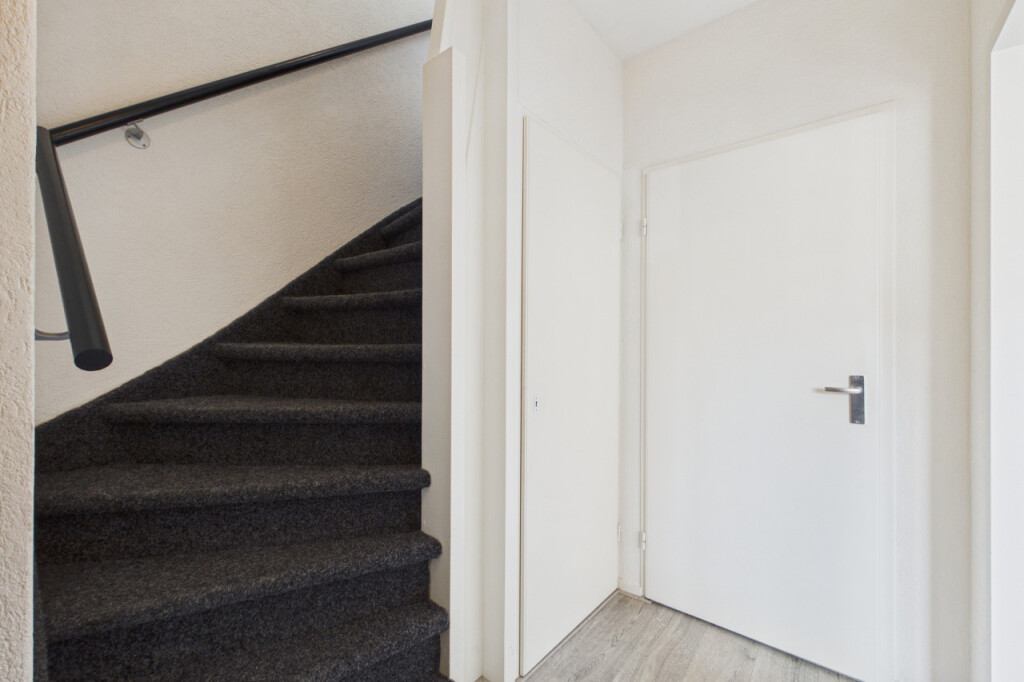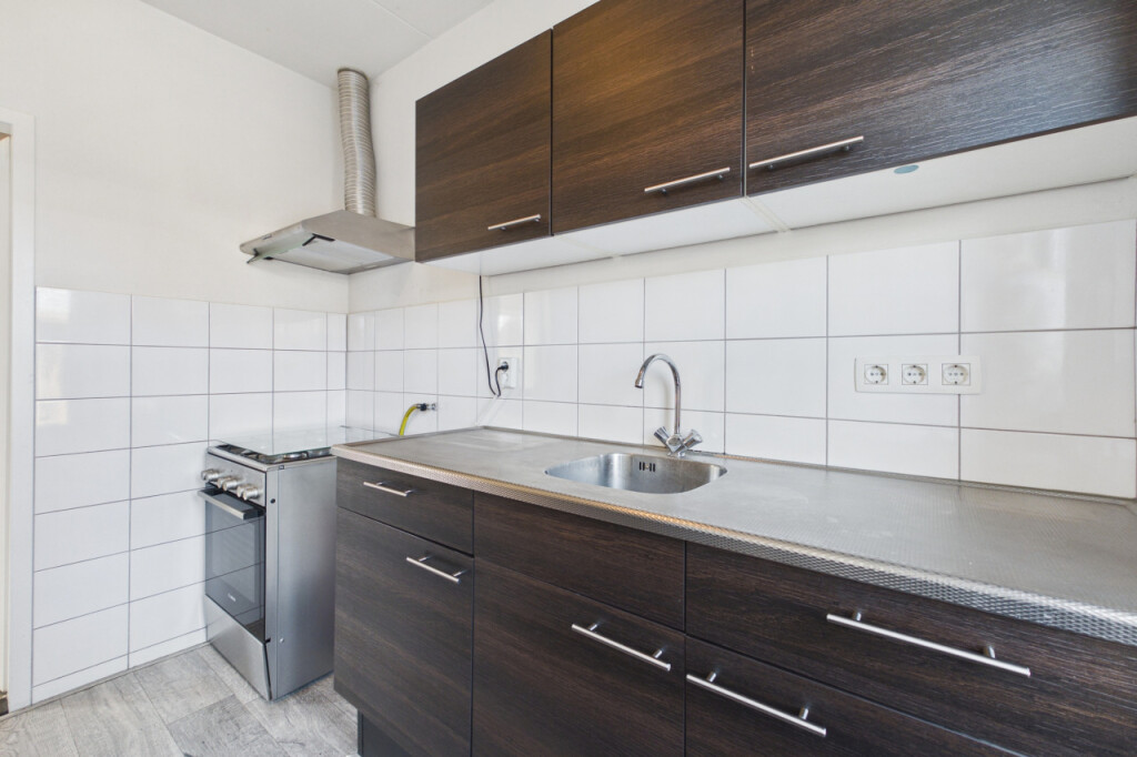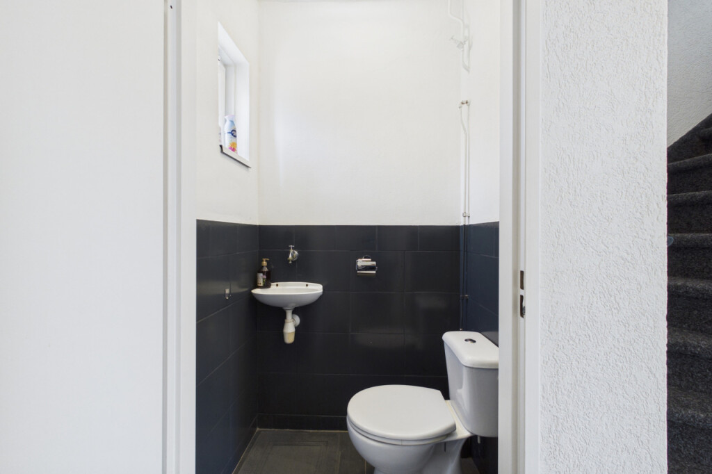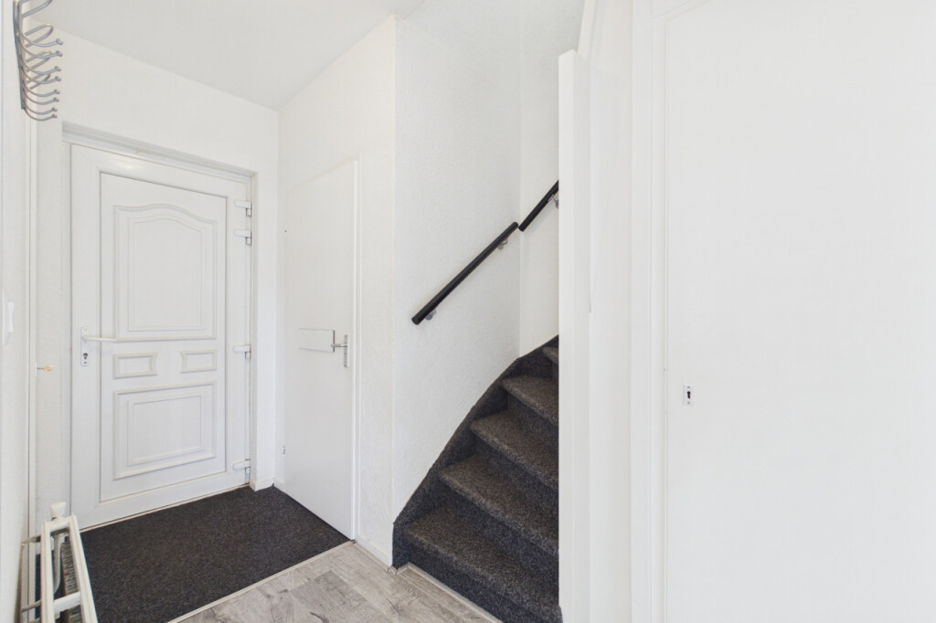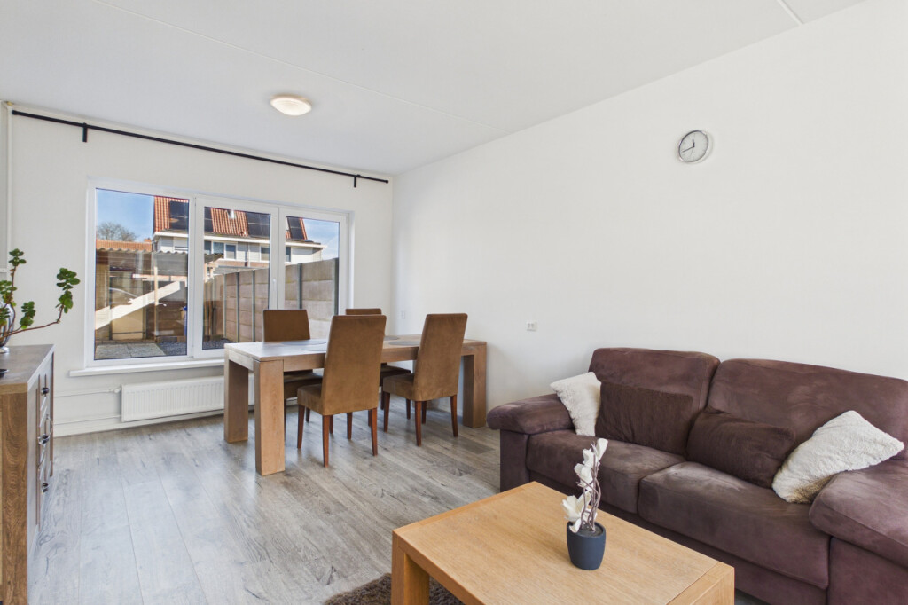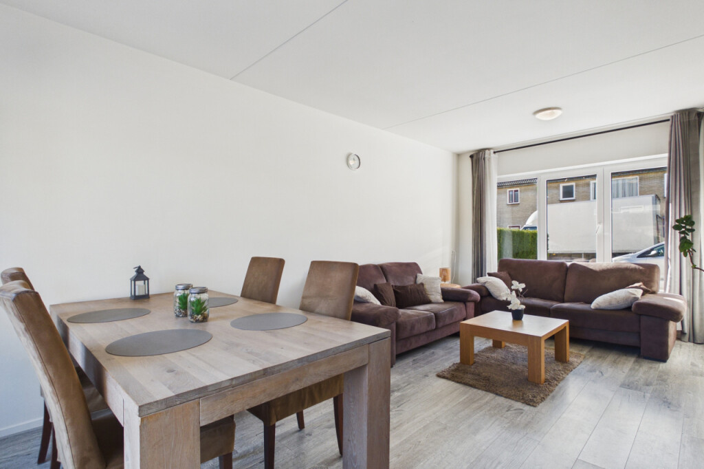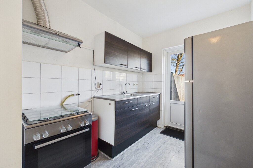 Je komt de woning binnen in de hal met meterkast, toilet en trapopgang naar de eerste verdieping. Onder de trap bevindt zich een handige trapkast voor extra bergruimte. Vanuit de hal heb je toegang tot de woonkamer en de keuken. De lichte doorzonwoonkamer beschikt over grote raampartijen aan zowel de voor- als achterzijde, waardoor er veel daglicht binnenvalt. De ruimte is netjes afgewerkt met een laminaatvloer en biedt voldoende plek voor een gezellige zit- en eethoek. Aansluitend bevindt zich de dichte keuken uit 2020, geplaatst in een rechte opstelling en voorzien van een afzuigkap en spoelbak. Overige apparatuur kan desgewenst worden overgenomen. Ook zijn hier de aansluitingen voor witgoedapparatuur aanwezig. Vanuit de keuken heb je toegang tot de achtertuin.
