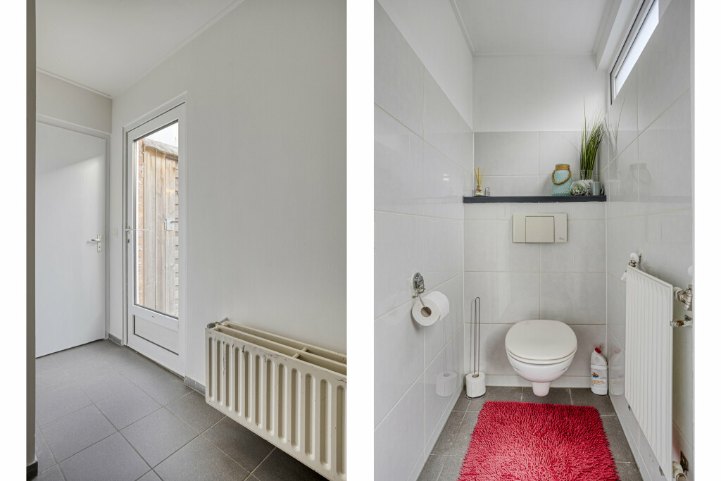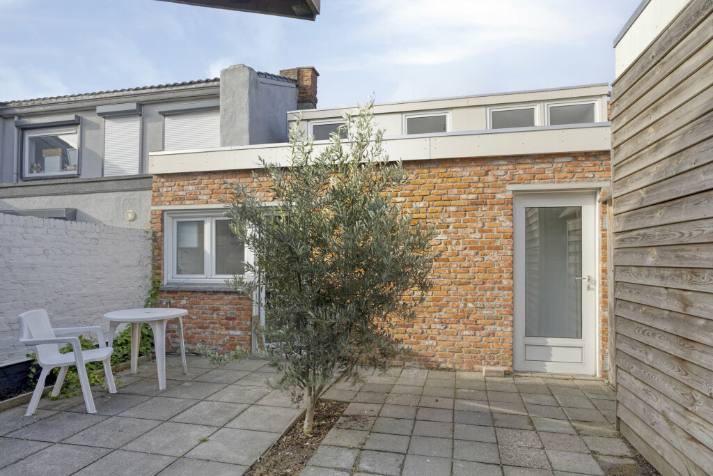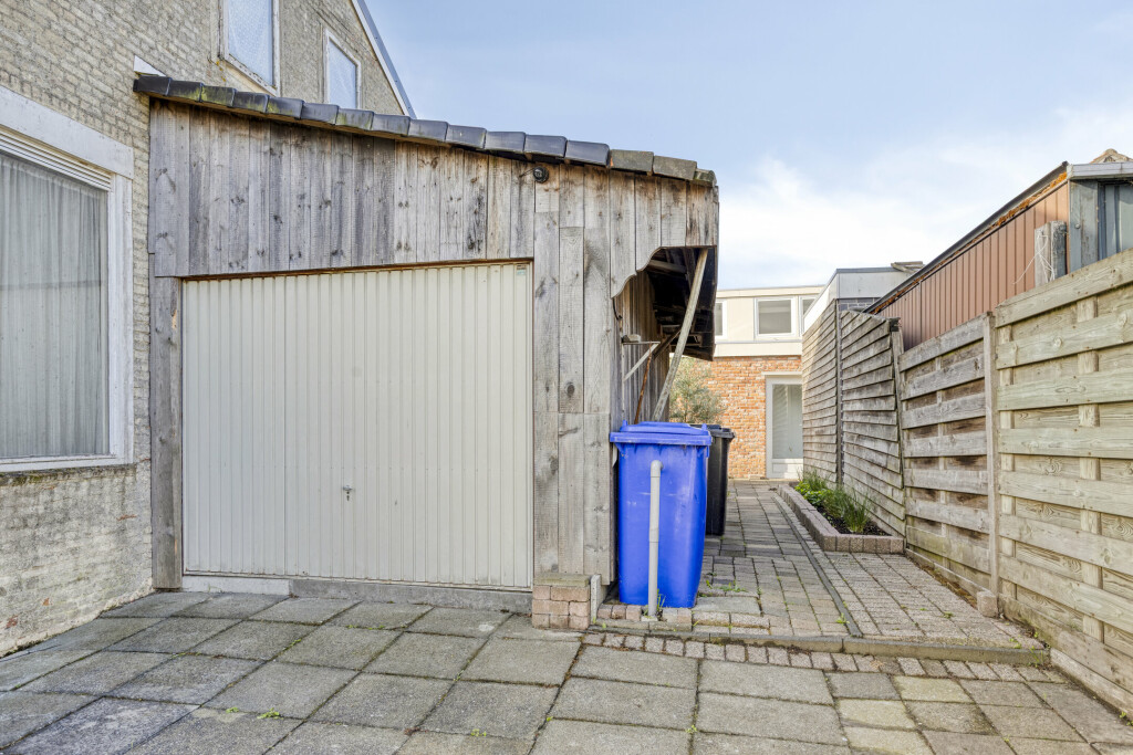 Direct achter de keuken ligt de zeer diepe achtertuin. Hier vind je een fijn terras om van de zon te genieten, een garage voor extra gemak en een vrije achterom. De tuin biedt voldoende ruimte voor spel, ontspanning of het stallen van fietsen en tuingereedschap, en dankzij de diepte en ligging ervaar je hier veel privacy en rust.