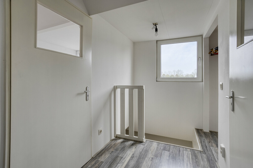 De eerste verdieping heeft een overloop met toegang tot twee slaapkamers. Dankzij de dakkapel zijn de kamers extra ruim en licht, ideaal voor een rustige nachtrust of als werk- of hobbyruimte.