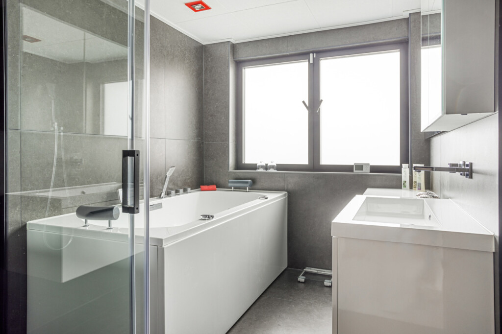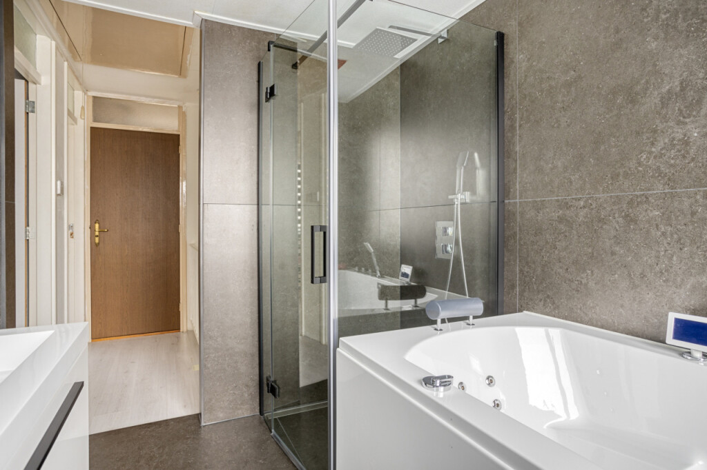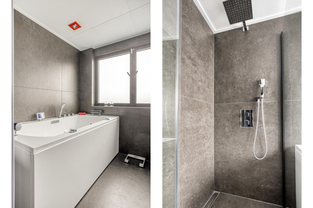 De overloop geeft toegang tot twee slaapkamers en een moderne, luxe badkamer (2024). Deze badkamer is ingericht met een royale inloopregendouche, een groot bubbelbad en een breed wastafelmeubel met spiegelkast. De huidige kleine badkamer is bedoeld om te worden omgebouwd tot extra toilet; de benodigde materialen hiervoor zijn al aanwezig. Via een vlizotrap bereikt u de bergzolder, waar tevens de cv-installatie is geplaatst.