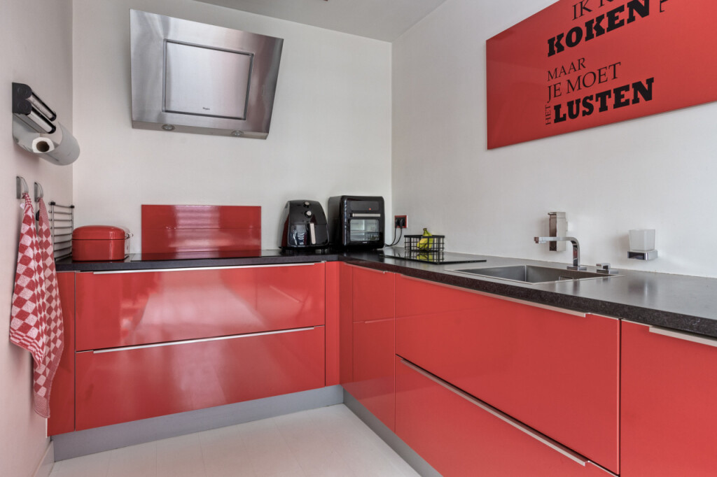 Via de entree bereikt u de hal met toiletruimte (vernieuwd in 2024 met een hangtoilet) en de trap naar de eerste verdieping. De lichte woonkamer is voorzien van een laminaatvloer en een deur naar de achtertuin. De ruime keuken (2017) valt op door het royale lichtinval dankzij de grote raampartijen en is uitgerust met diverse inbouwapparatuur: een 5-pits inductiekookplaat, combimagnetron, inbouwkoffiemachine, close-in boiler en een vaatwasser.