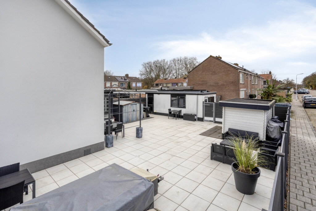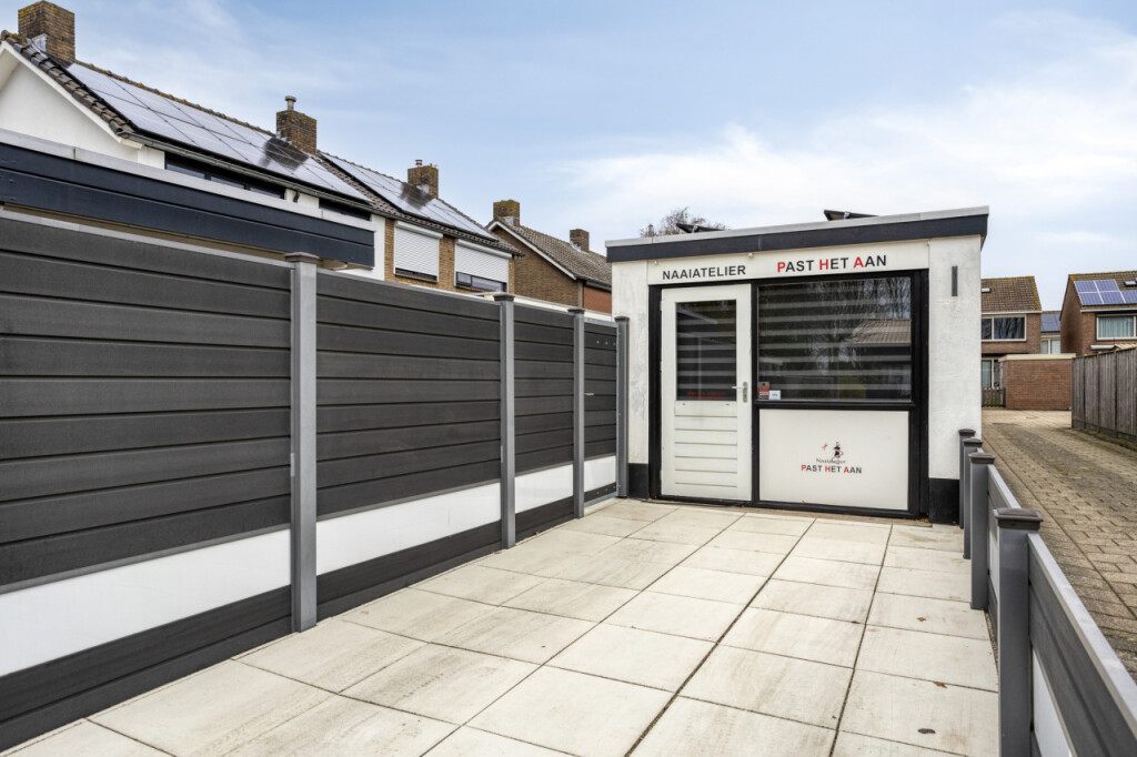 De woning beschikt over een ruime, zonnige en onderhoudsvriendelijke achtertuin, volledig omheind met een modulaire composiet schutting. Extra opbergruimte vindt u in de praktische buitenberging. Een absoluut pluspunt is de vrijstaande garage met bedrijfsbestemming, die voorzien is van (elektrische) verwarming, elektra, een aansluiting voor water en via een eigen toegang bereikbaar is. Dit biedt volop mogelijkheden voor wie een onderneming aan huis wil starten of behoefte heeft aan werk- of opslagruimte.