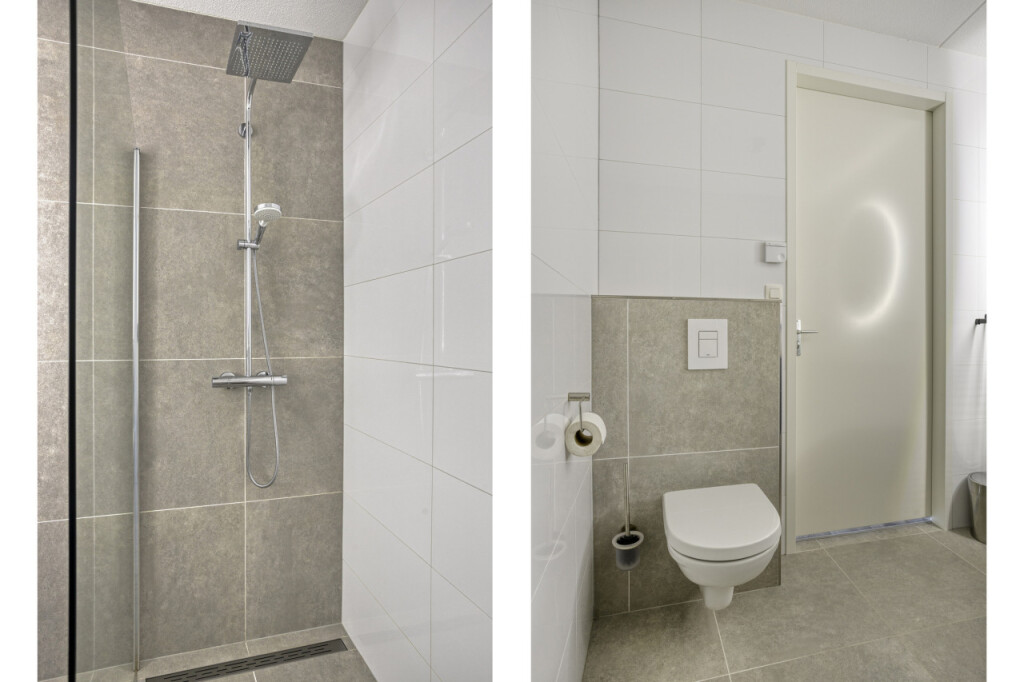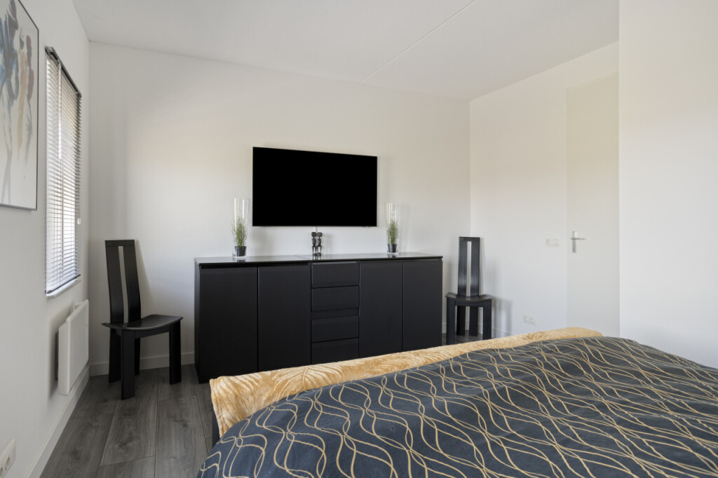 Op deze verdieping geeft de overloop toegang tot 2 ruime slaapkamers, een vaste kast, berging/technische ruimte en badkamer. De moderne en luxe afgewerkte badkamer is uitgevoerd met ruime inloopdouche met regen- en handdouche, wastafelmeubel met verlichte en verwarmde spiegel, 2e hangtoilet en vloerverwarming. In de berging/technische ruimte zijn naast de aansluiting voor het witgoed, de warmtepomp, het boilervat, de omvormer en de WTW-ventilatie unit geplaatst. Deze verdieping is afgewerkt met een mooie laminaatvloer en in het trapgat naar de tweede verdieping is een comfortabele multi-split airconditioning geplaatst, die voor een aangename verkoeling en verwarming van de ruimtes zorgt.