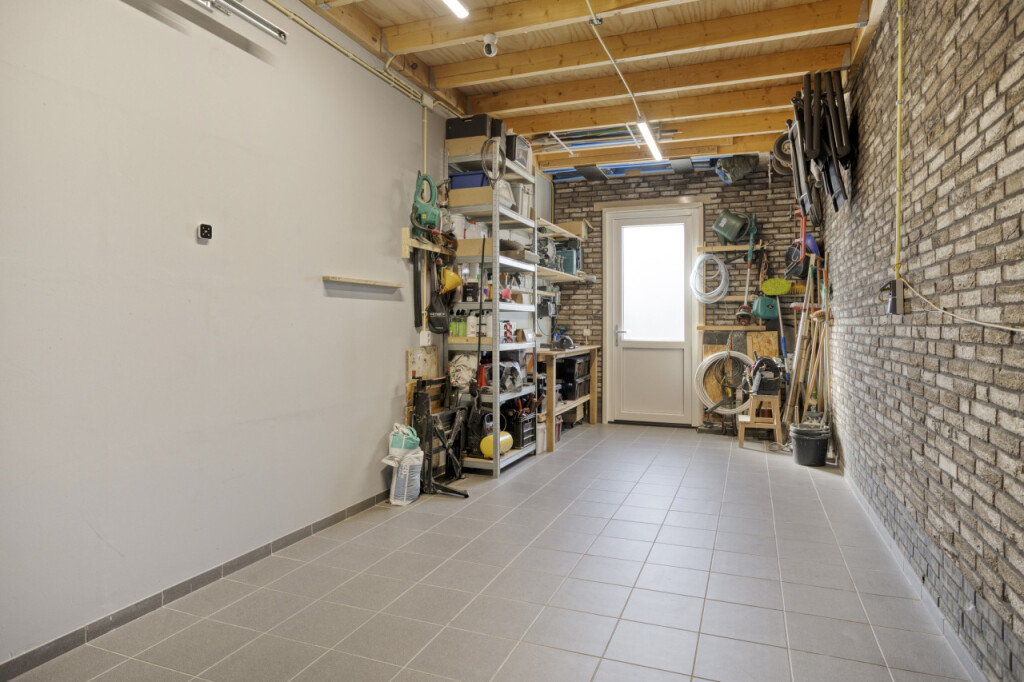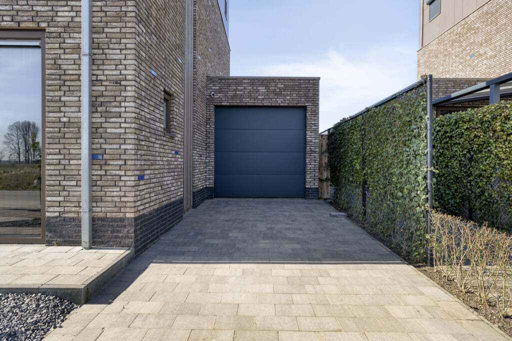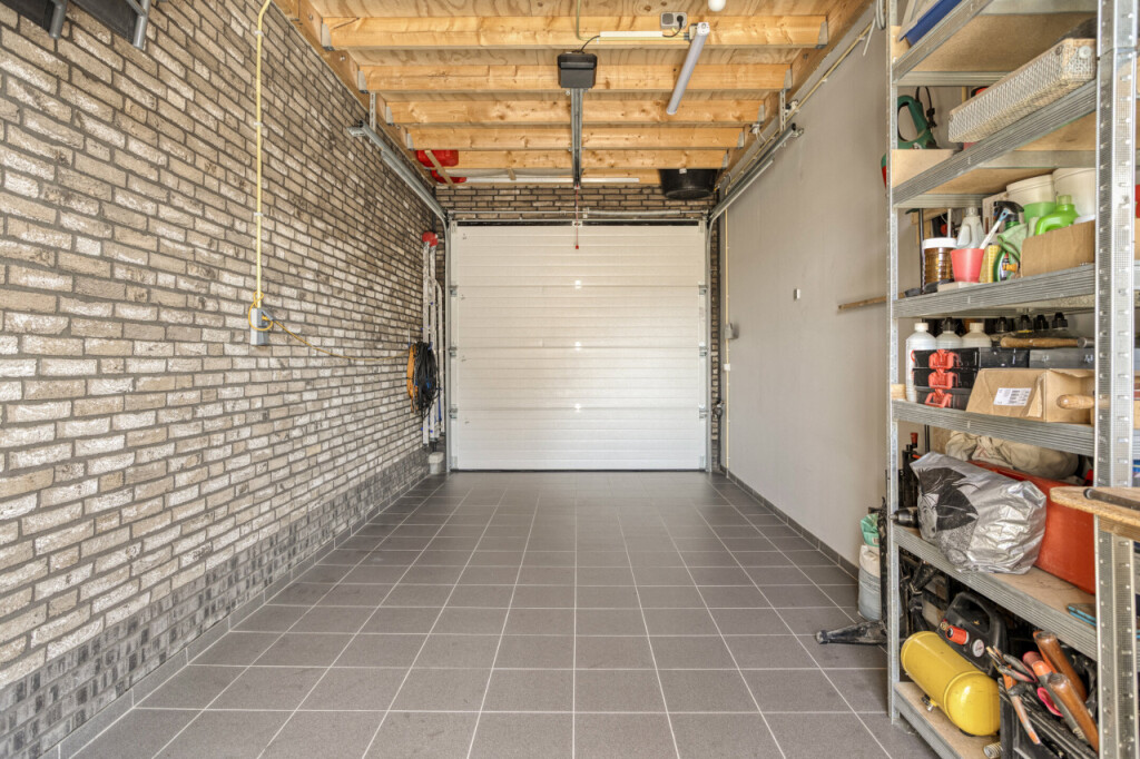 Vanuit de tuin en vanaf de oprit is de garage bereikbaar. De garage is uitgevoerd met elektrische sectionaaldeur en wateraansluiting.