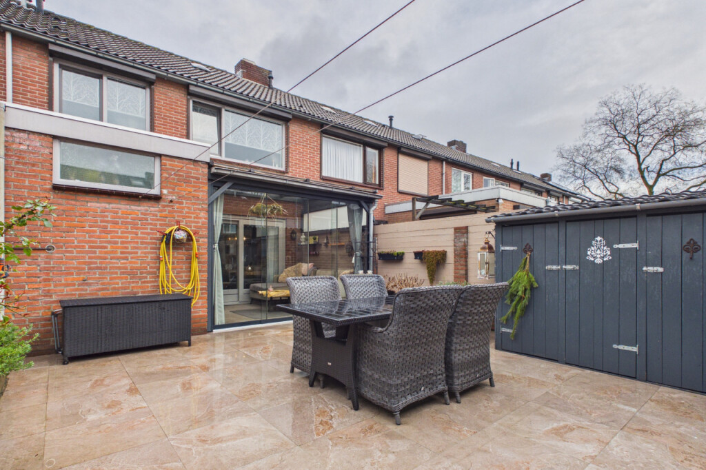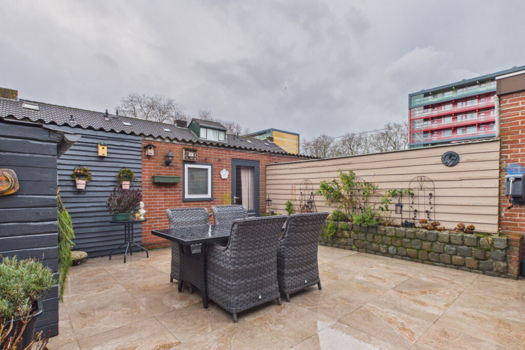 De achtertuin is gelegen op het zuidoosten, waardoor je hier al vroeg op de dag van de zon kunt genieten. De tuin is vorig jaar opnieuw aangelegd en onderhoudsvriendelijk ingericht met een terras en een enkele plantenborder. Dankzij de eigen achterom is de tuin ook gemakkelijk bereikbaar. Achter in de tuin bevinden zich een houten berging én een ruime stenen berging, ideaal voor fietsen, gereedschap en extra opslag.