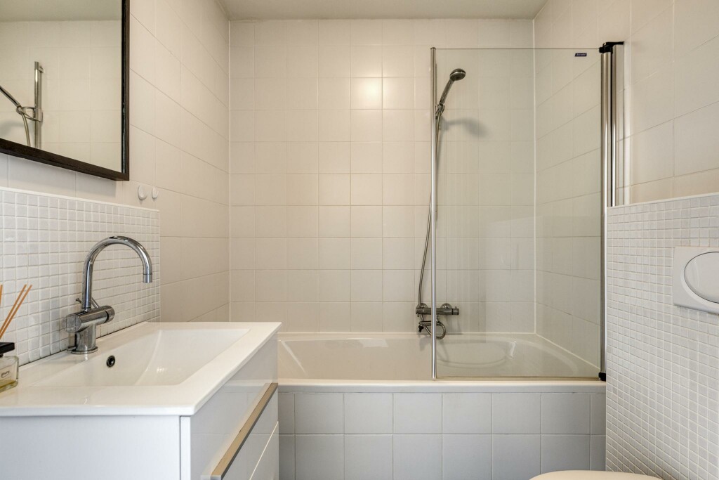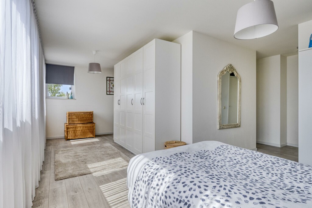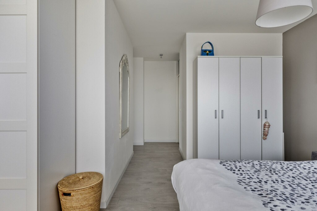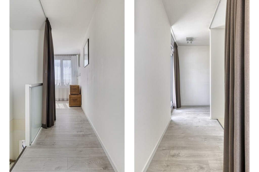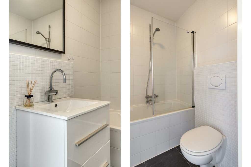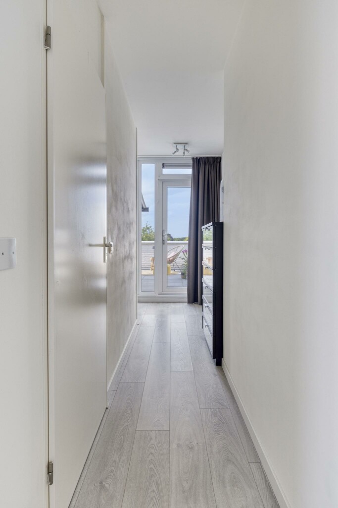 Overloop met toegang tot de slaapkamer(s), badkamer, berging en het riant dakterras. Het appartement beschikt momenteel over één slaapkamer, welke is ontstaan door de oorspronkelijk 2 slaapkamers samen te voegen. Desgewenst zijn deze eenvoudig weer te splitsen. De badkamer is netjes afgewerkt en voorzien van een bad/douchecombinatie, wastafel en tweede toilet. In de berging bevindt zich de aansluiting voor witgoedapparatuur, plus de warmwaterboiler.