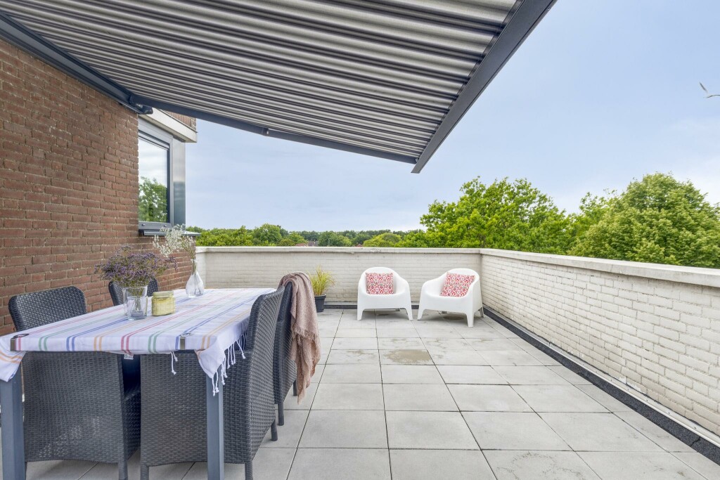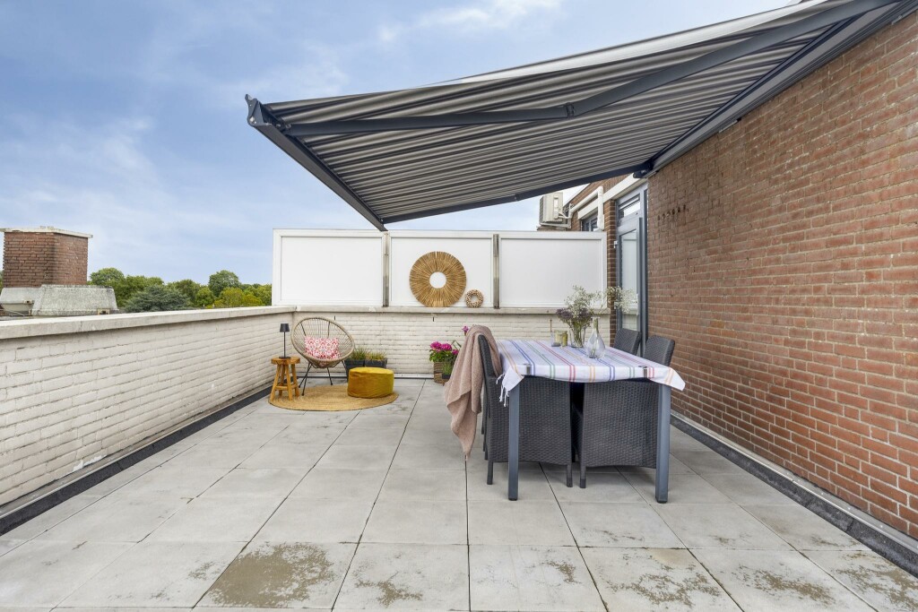 Het riante dakterras van maar liefst 32 m2 is gelegen op het zuidwesten. Biedt een extra leefruimte, veel privacy, zon en uitzicht. Heerlijk om tot in de late uurtjes te genieten van het buitenleven.