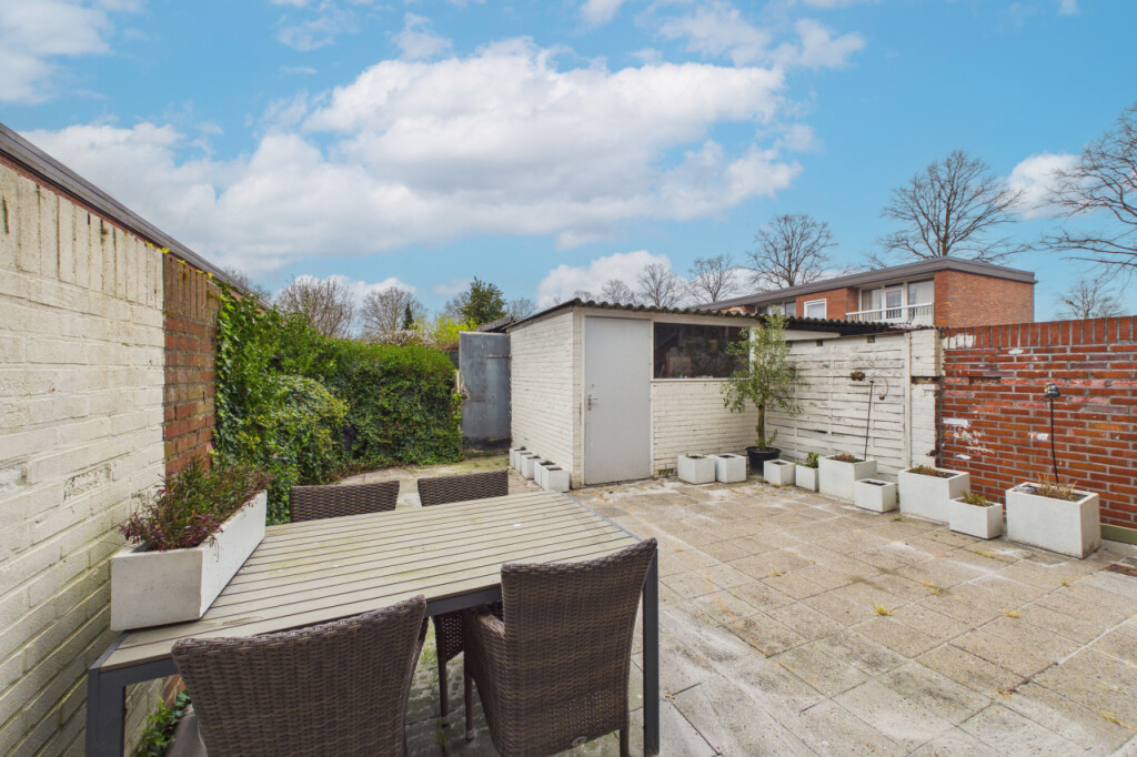 Via de achterdeur bereik je de onderhoudsvriendelijke achtertuin met achterom en een stenen berging (2,9 x 2,5 m).