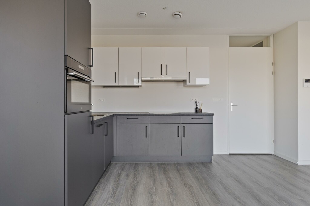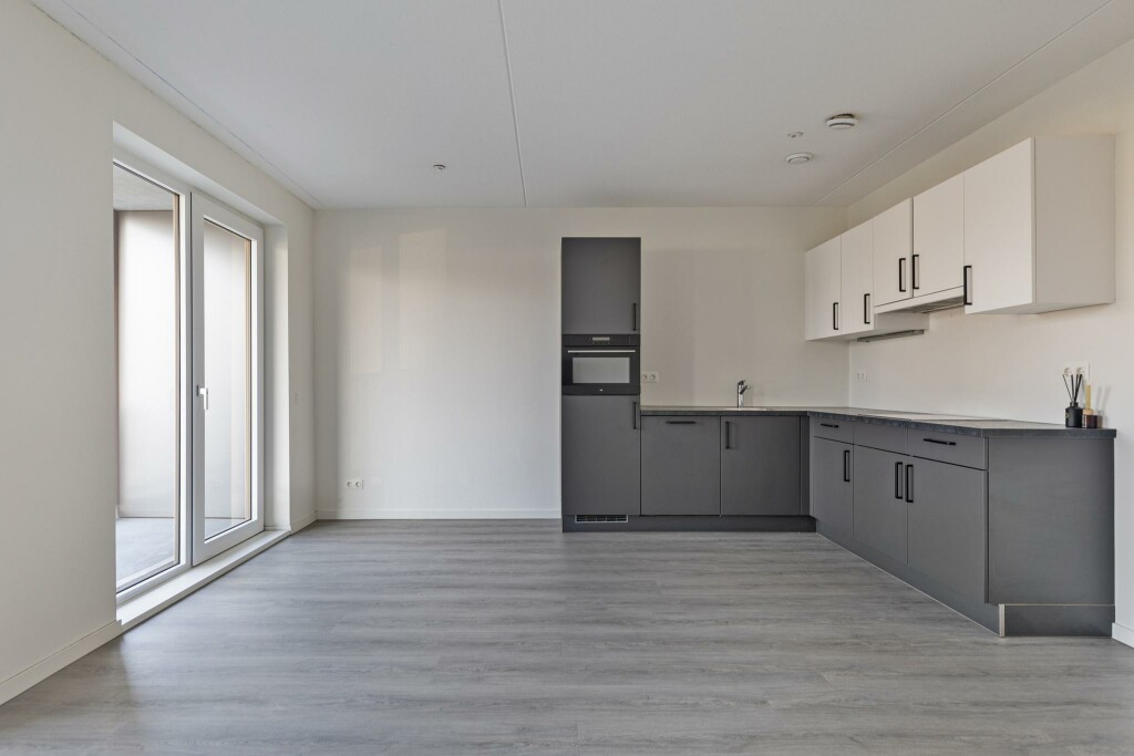 De woonkamer met open keuken is praktisch ingericht en biedt veel licht. De hoekkeuken is voorzien van alle benodigde apparatuur en biedt voldoende opbergruimte voor al je keukengerei, zodat je efficiënt kunt koken en de ruimte netjes blijft. Vanuit de woonkamer en keuken heb je toegang tot een ruim balkon, waar je heerlijk kunt genieten van de buitenlucht.