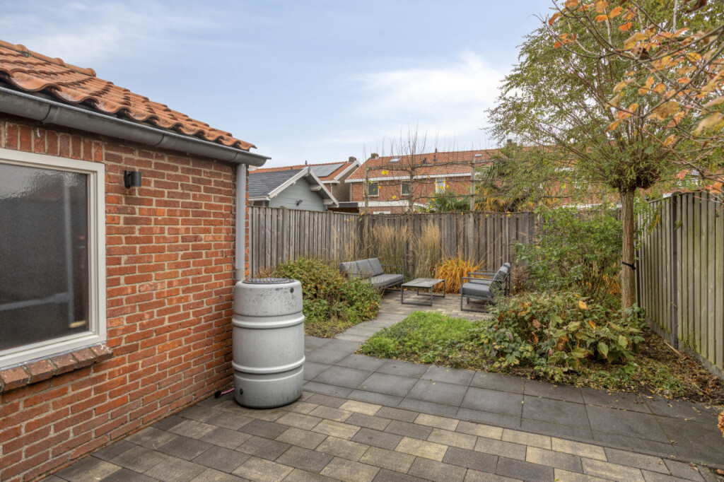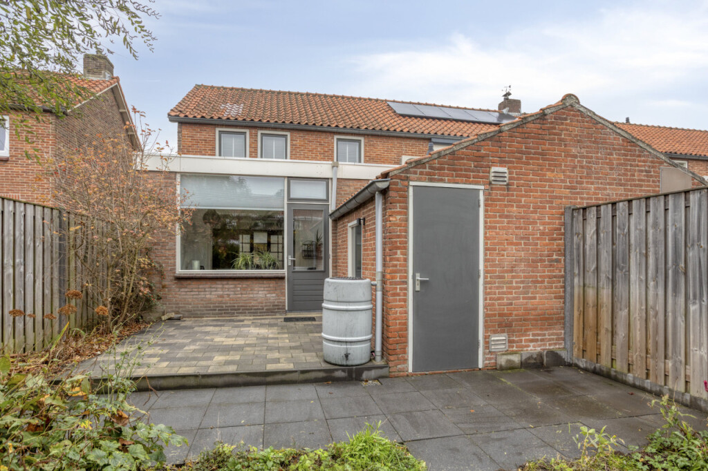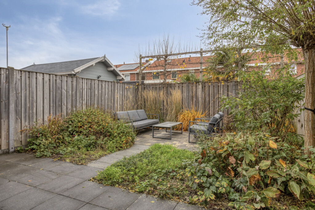 De tuin is praktisch en prettig ingericht en ligt op het oosten, waardoor je in de ochtend en middag volop van de zon geniet. Het nette terras biedt plek voor een eettafel of loungestoelen, en de borders zorgen voor een aangename groene uitstraling zonder dat het onderhoud veel tijd vraagt. De stenen berging is praktisch voor fietsen en tuingereedschap en dankzij de vrije achterom kom je altijd gemakkelijk achterom met je fiets of boodschappen.