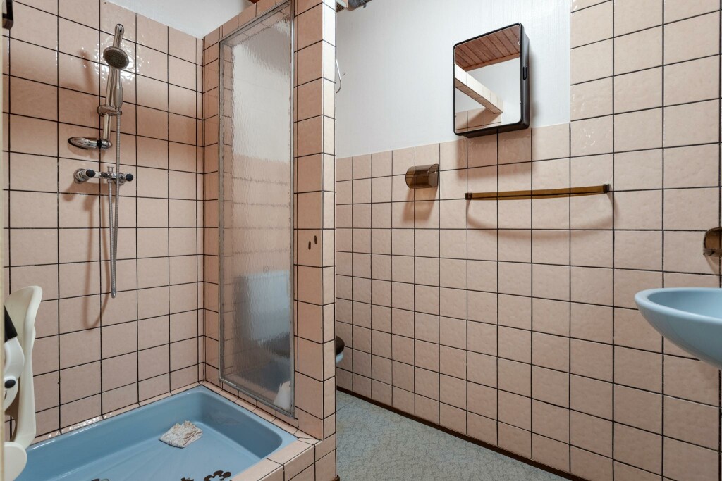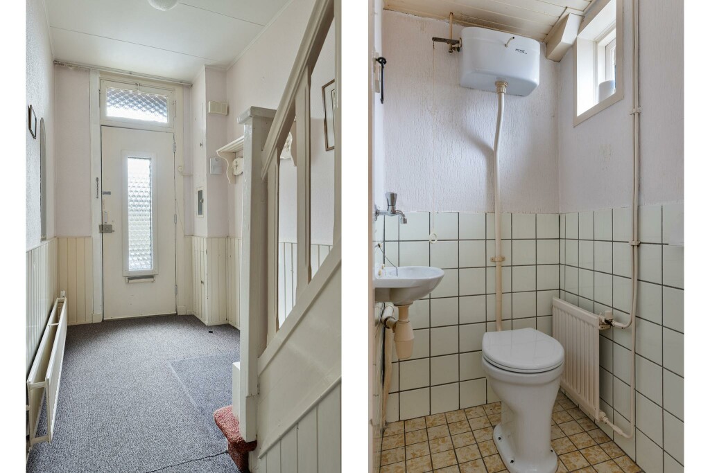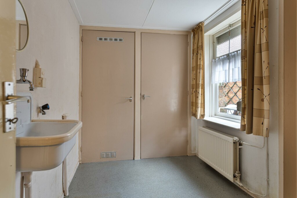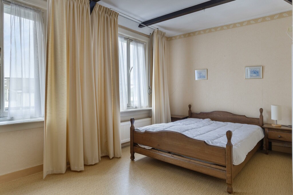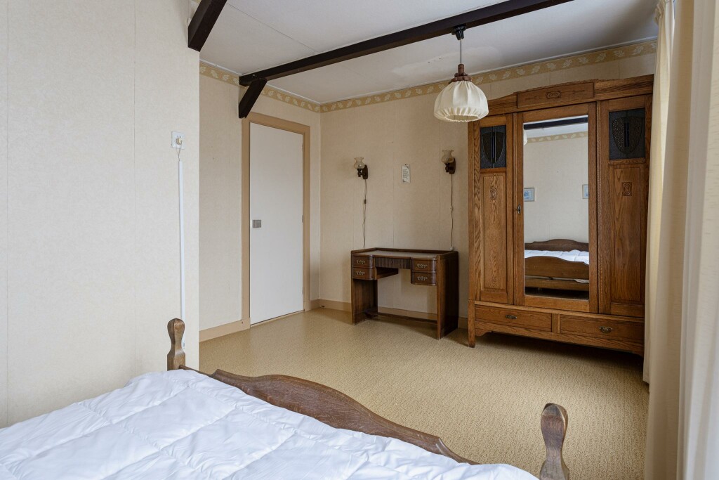 Op de eerste verdieping leidt de overloop naar twee slaapkamers, die dankzij hun formaat en indeling een fijne basis vormen. De badkamer, voorzien van een douche, wastafel en toilet, is functioneel en biedt ruimte voor modernisering naar eigen wens.