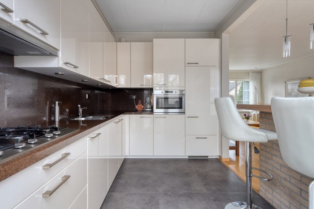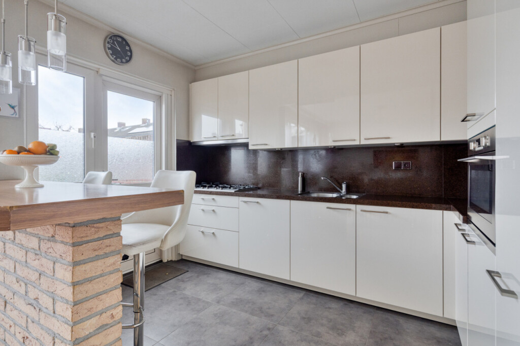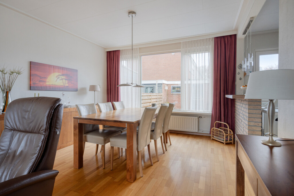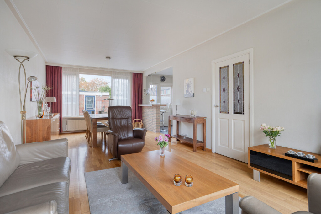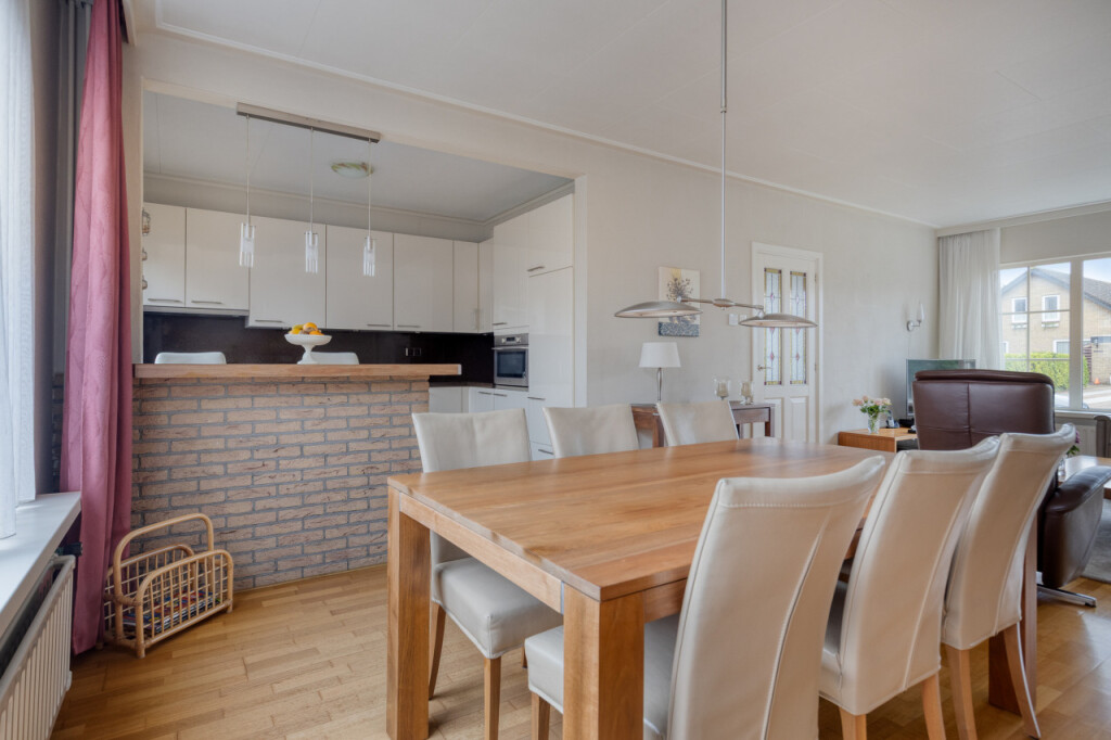 Bij binnenkomst valt direct de heerlijke lichtinval op. De doorzonwoonkamer biedt een warm welkom en geeft dankzij de grote raampartijen een ruimtelijk gevoel. De moderne, halfopen keuken vormt het hart van het huis en is voorzien van strakke, lichte fronten en alle benodigde inbouwapparatuur. Een fijne plek waar je kookt, borrelt en leeft.