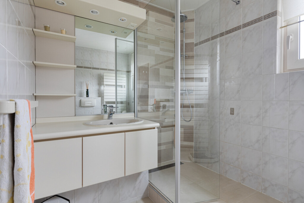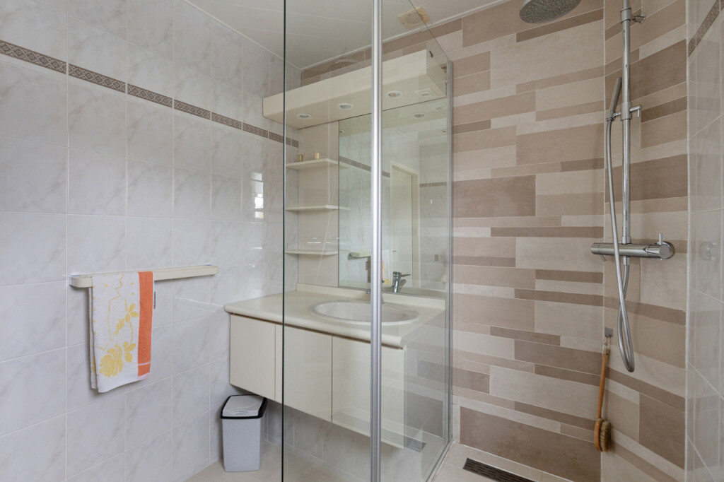 Op de eerste verdieping bevinden zich drie goed bemeten slaapkamers, stuk voor stuk verzorgd en licht. De moderne badkamer is praktisch ingedeeld en voorzien van een ruime douche, wastafelmeubel en nette afwerking.