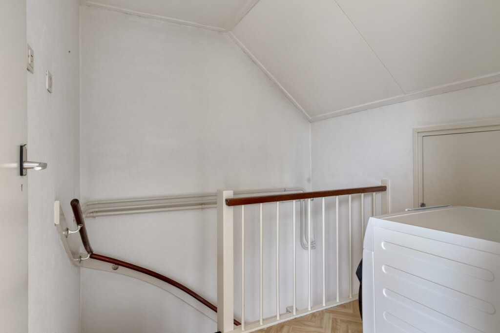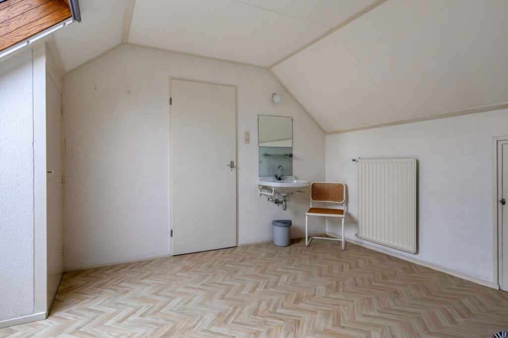 Middels een vaste trap is er toegang tot de ruime zolderverdieping met overloop, bergruimte met cv-installatie (Intergas ’21). Vanuit de overloop een deur naar de ruime 4e slaapkamer met groot dakraam en inbouwkasten, een wastafel en berging onder de schuine kanten.
