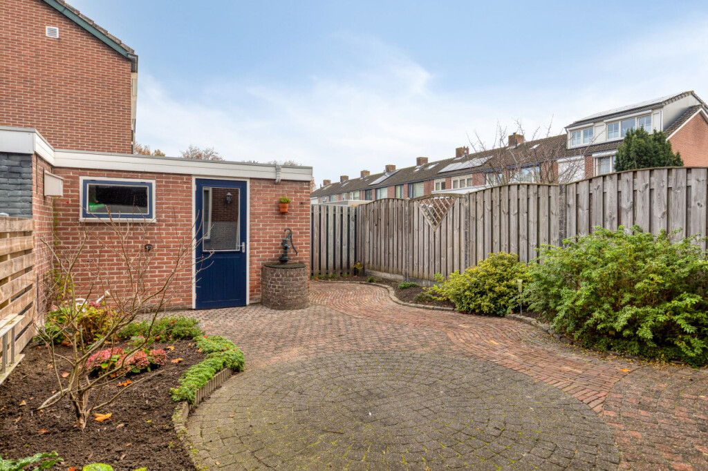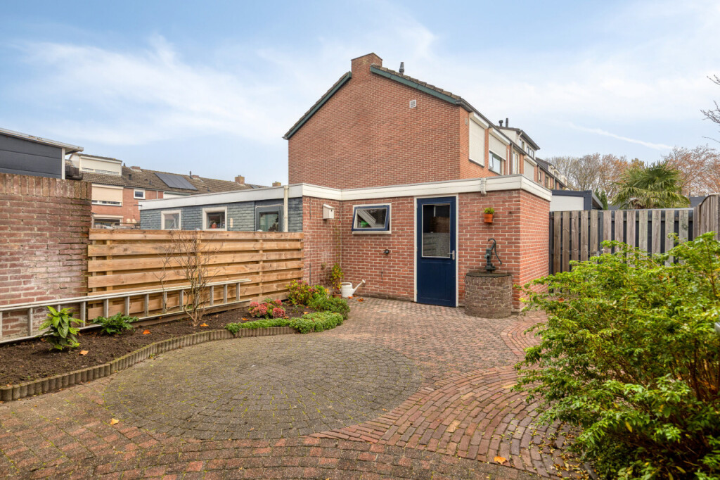 De achtertuin is verzorgd en biedt volop privacy. Achterin de tuin bevindt zich een praktische stenen berging, perfect voor fietsen, gereedschap of hobbyspullen. De achterom maakt het geheel extra comfortabel.