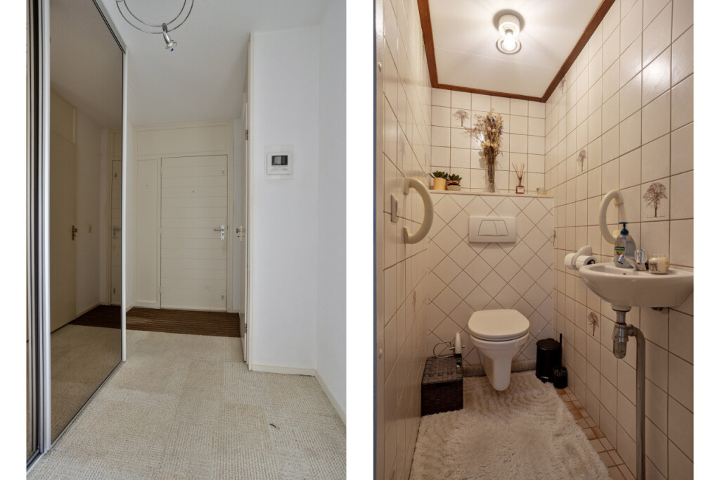 Verder is hier het toilet maar ook de cv-ruimte en bergkast met aansluitingen voor wasmachine en droger