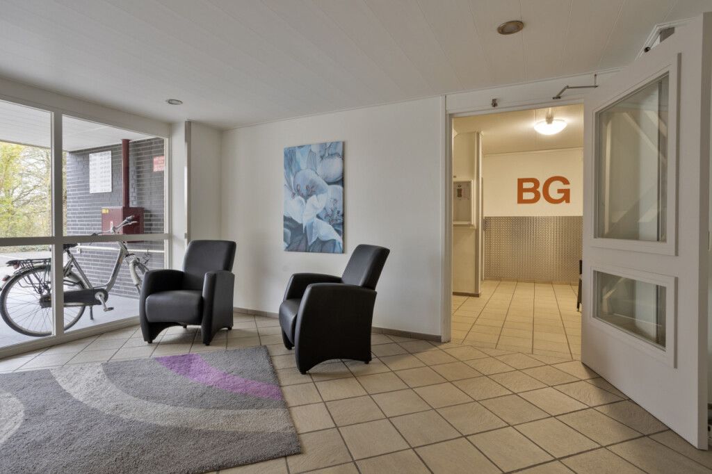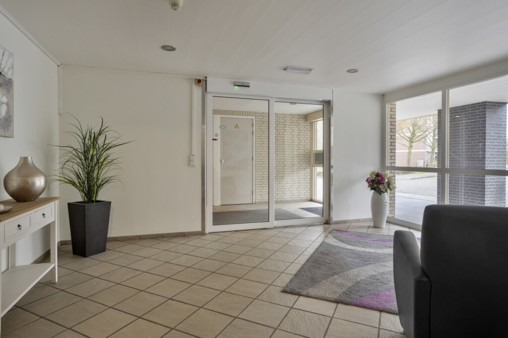 Via de beveiligde tussendeur zijn de lift en trappenhal te bereiken.