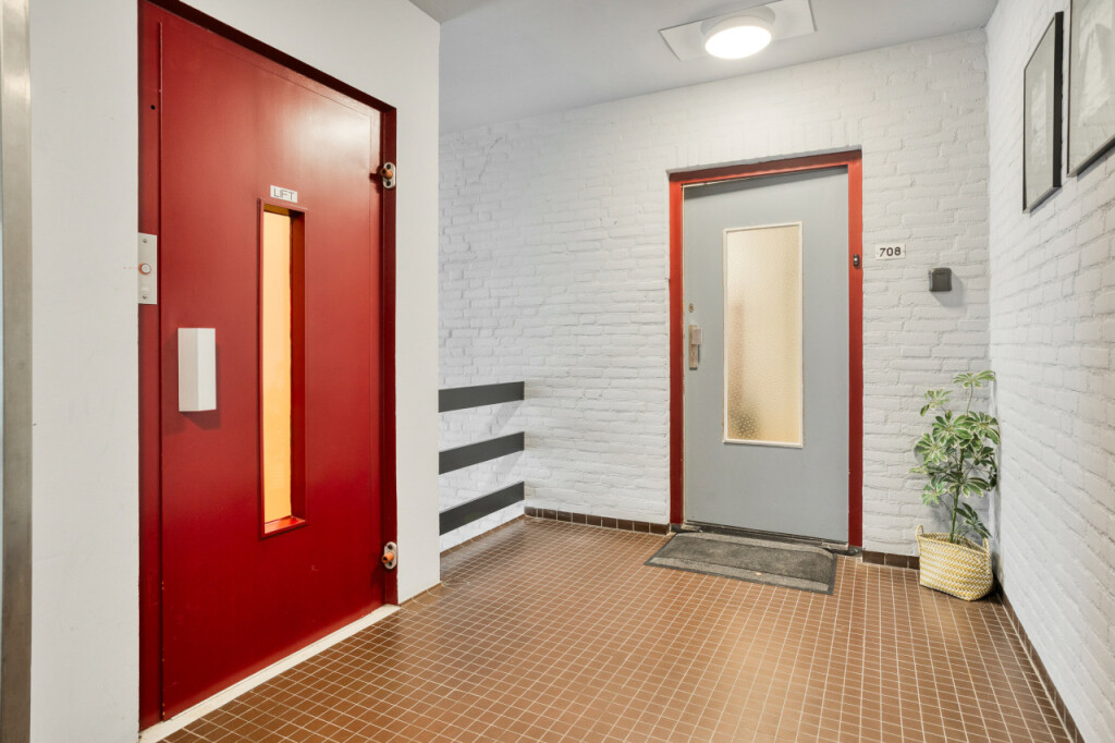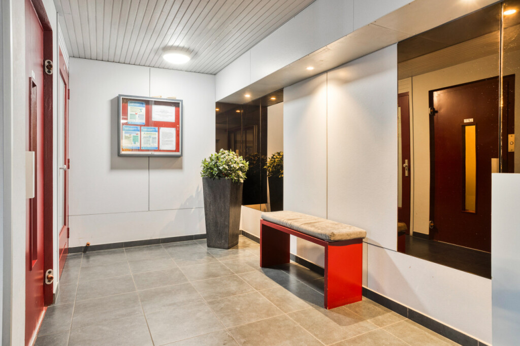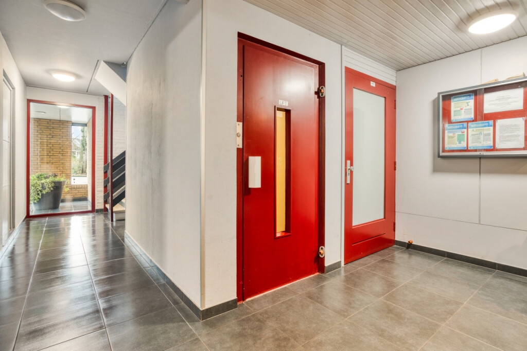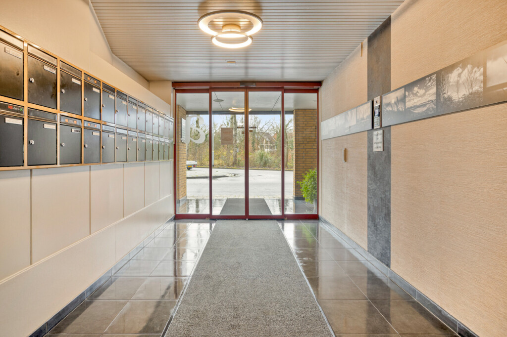 Entree in de gezamenlijke hal met postbussen, lift en de toegang tot de bergingen.