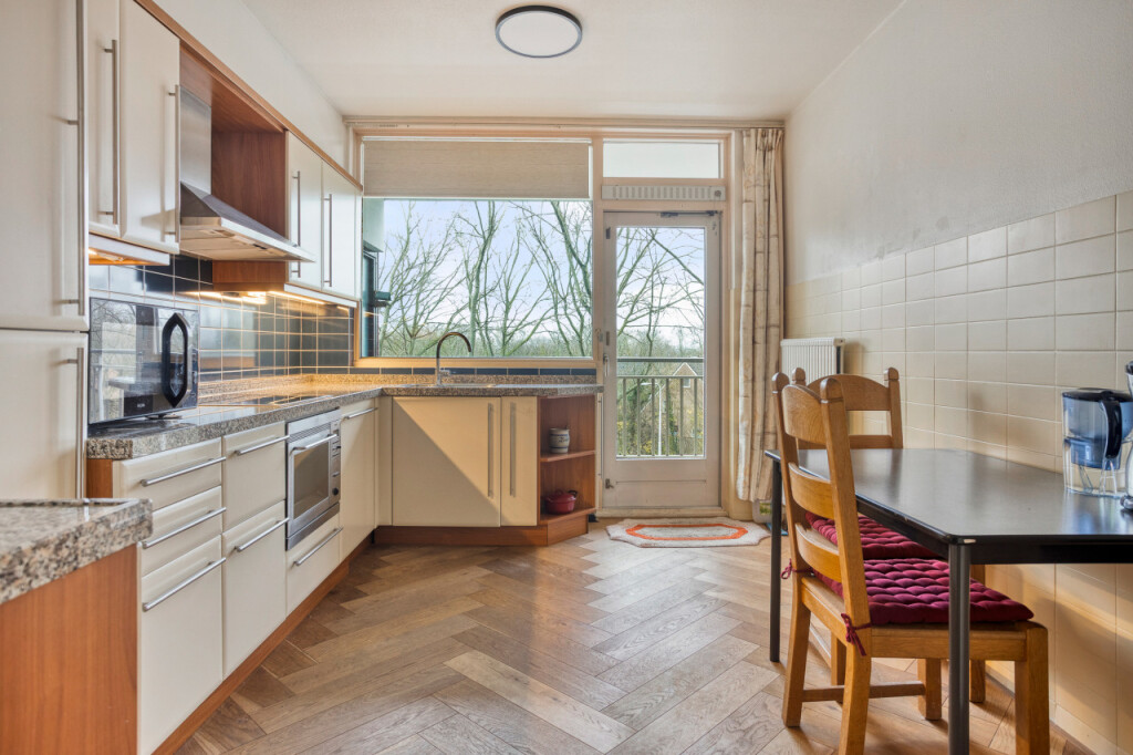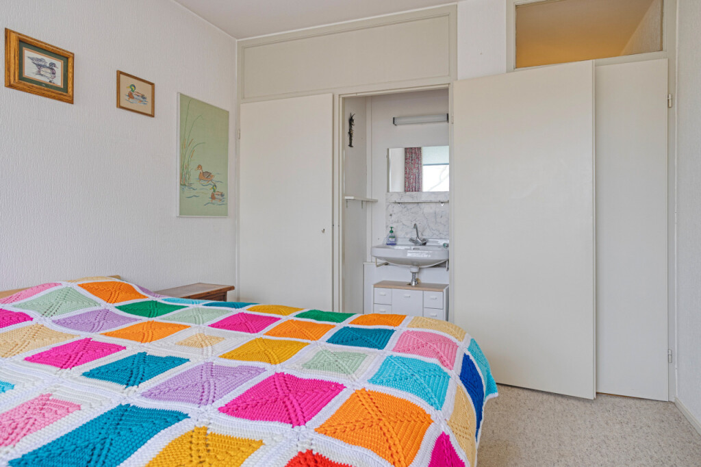 De eetkeuken is praktisch ingericht en van alle gemakken voorzien. Dankzij de deur naar het balkon is het hier een plezier om te koken én te genieten van het buitenleven. Het balkon biedt een mooi uitzicht over de omgeving en vormt een fijne plek om even tot rust te komen. De royale master bedroom beschikt over een grote kastenwand en heeft eveneens toegang tot het balkon. De tweede ruime slaapkamer is ideaal als logeer- of werkkamer.