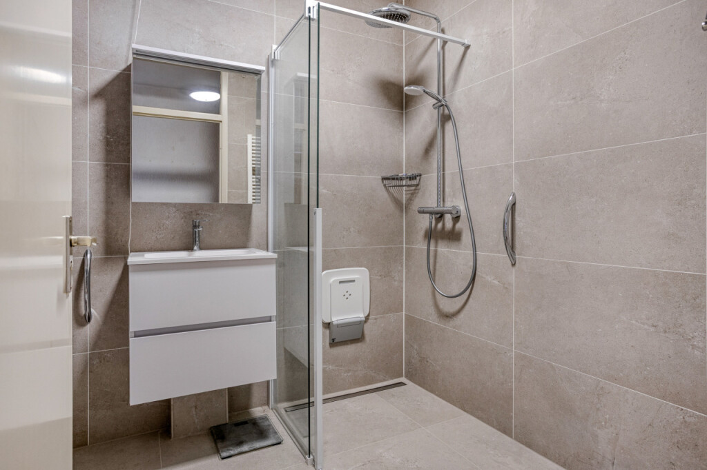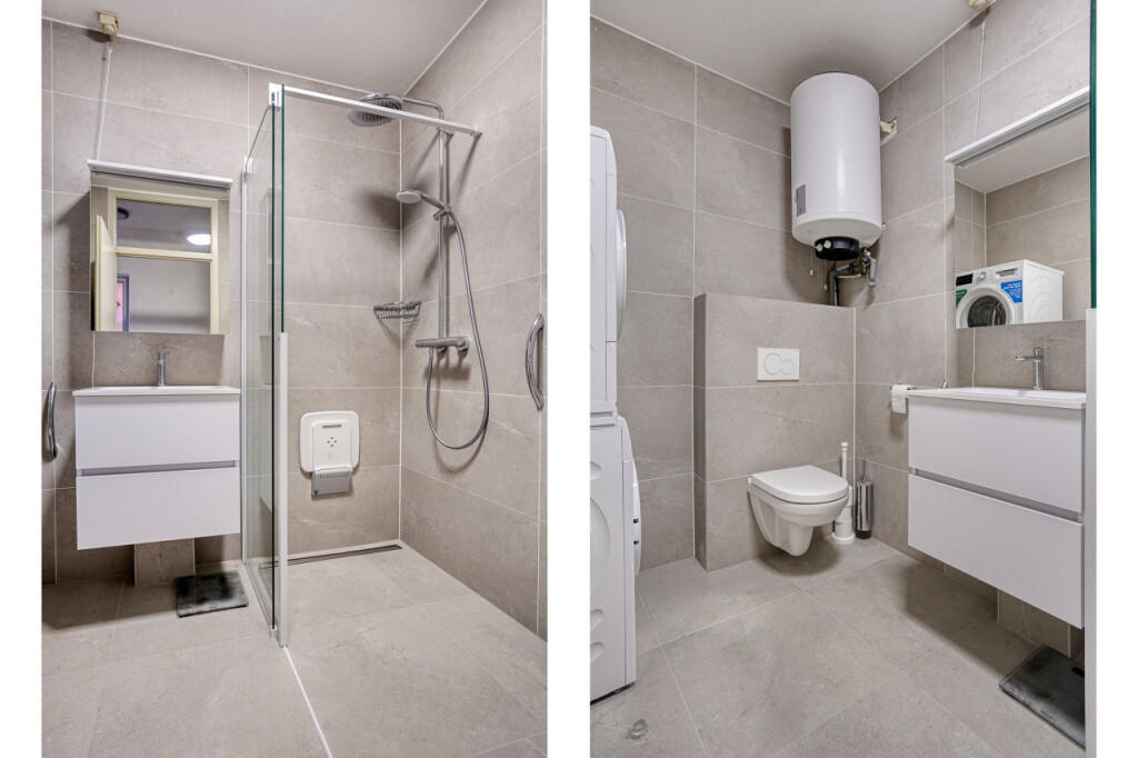 De moderne badkamer is fris en eigentijds uitgevoerd, voorzien van een comfortabele douche, wasmachineaansluiting en een tweede toilet. Op de begane grond treft u de gezamenlijke entree met postbussen, lift en toegang tot de bergingen en het achterliggende parkeerterrein met de garages. Bij dit appartement wordt een garage separaat aangeboden voor €19.500,-, een waardevolle toevoeging die zowel extra bergruimte als parkeergemak biedt.