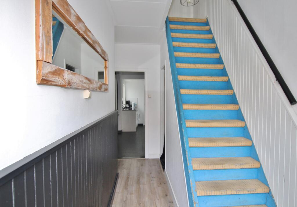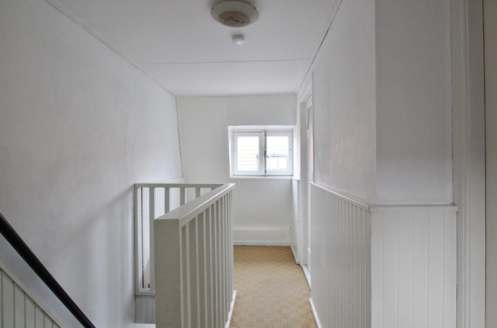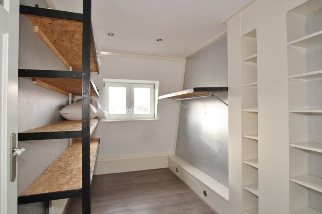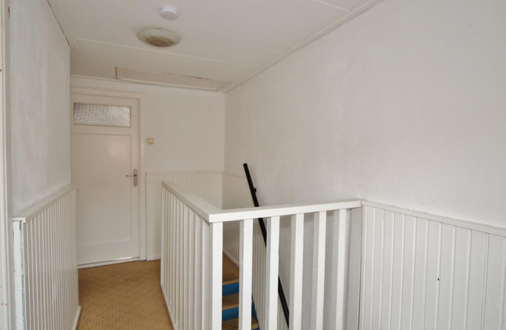 Ruime overloop met vlizotrap naar de tweede verdieping, 2 slaapkamers waarvan 1 een hele ruime en een kleinere, er is nog een kamer die dient als inloopkast.