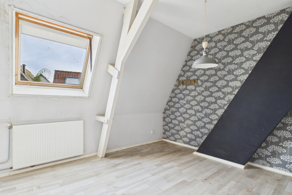 Vanaf de overloop op de eerste verdieping is de zolder bereikbaar. Deze bergzolder biedt praktische opslagruimte.
