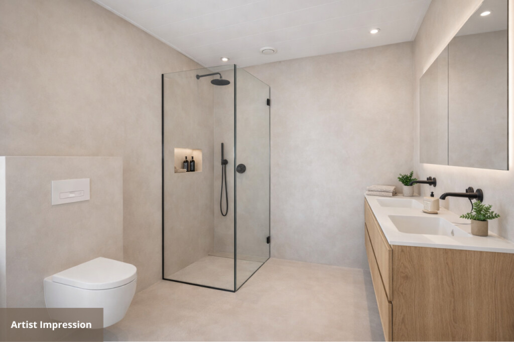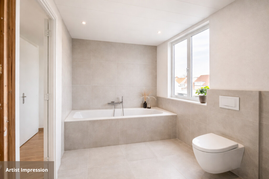 Op de eerste verdieping bevinden zich drie ruime slaapkamers, elk met veel licht en indelingsmogelijkheden. De badkamer is nog niet afgewerkt, wat je de kans geeft deze volledig naar eigen smaak te realiseren.