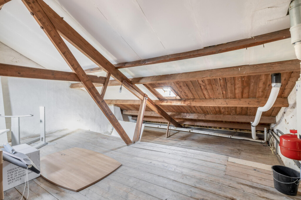 De tweede verdieping is bereikbaar via een vaste trap en biedt een zolderruimte die geschikt is voor diverse doeleinden, zoals extra bergruimte of het creëren van een hobby- of werkplek.