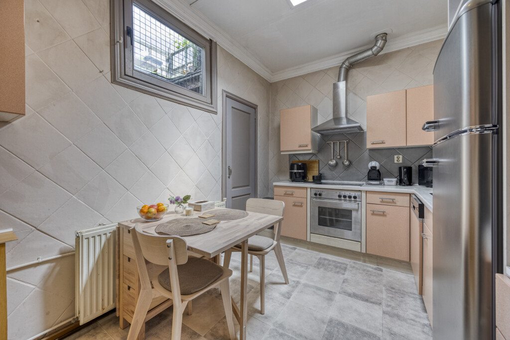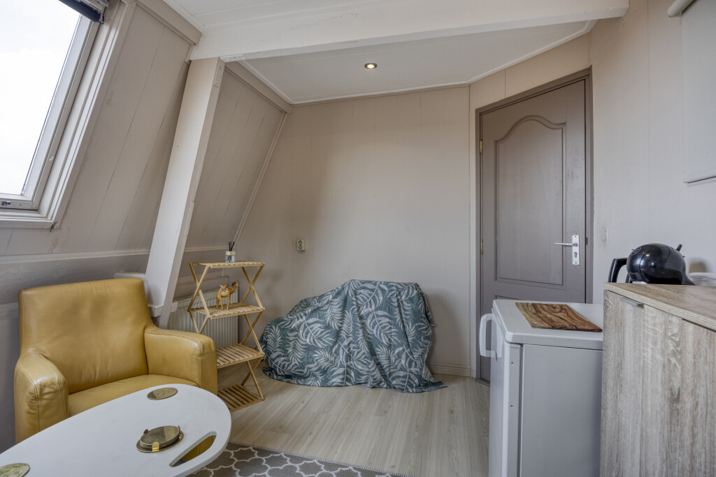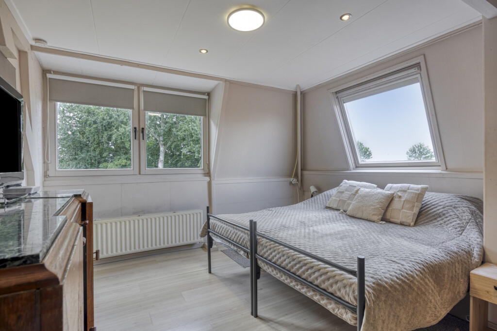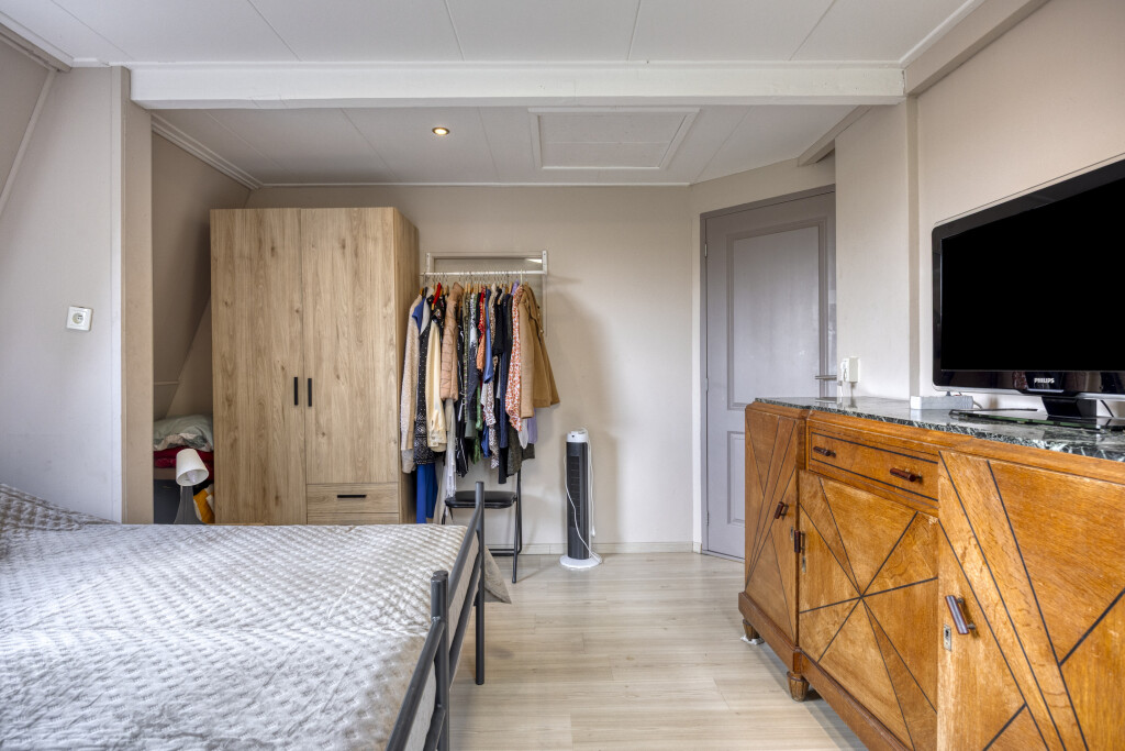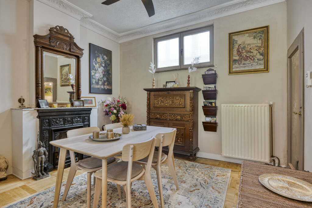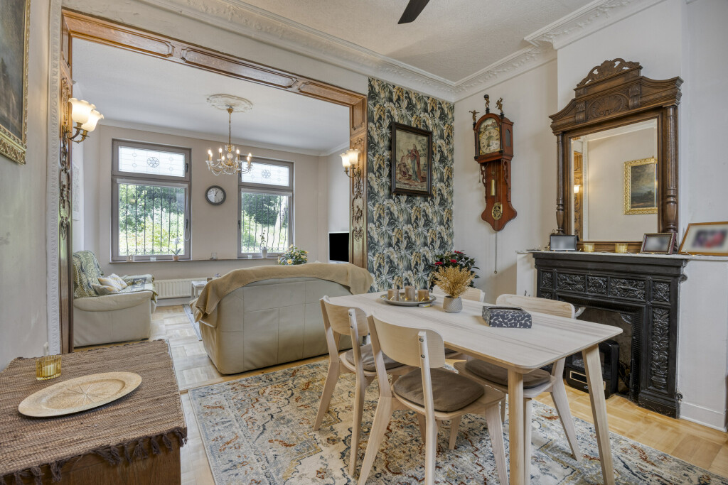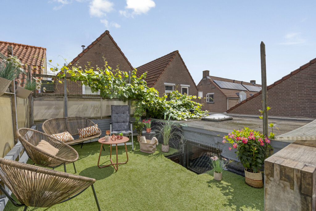 Wanneer je de woning binnenstapt, wordt verwelkomd door een ruime hal die direct de klassieke stijl verraadt. De woonkamer en-suite heeft prachtige, karakteristieke elementen en een warme parketvloer die zorgt voor een behaaglijke sfeer. De aangrenzende keuken in hoekopstelling is praktisch ingericht en groot genoeg voor een knusse eethoek. Een aparte toiletruimte met wasmachineaansluiting maakt de begane grond compleet. Aan de achterzijde bevindt zich een royale berging, ideaal voor fietsen of extra opslag. Dit deel van het huis biedt bovendien mogelijkheden om extra woonruimte te creëren of juist een gezellige patio in te richten. Vanuit de hal is ook het dakterras bereikbaar – een zonnige plek waar je heerlijk ongestoord kunt ontspannen.