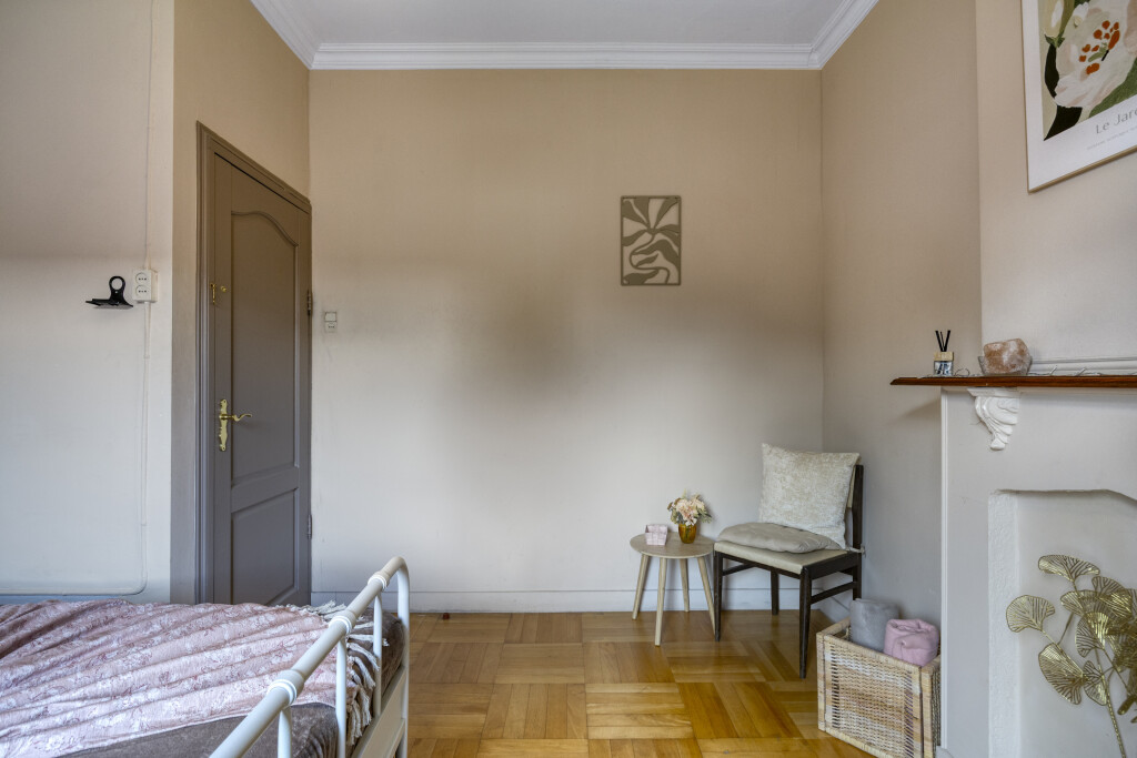 Op de eerste verdieping vind je twee comfortabele slaapkamers met een neutrale afwerking en een prettige lichtinval. De moderne badkamer is voorzien van een wastafelmeubel, inloopdouche en tweede toilet, waardoor alles wat je nodig hebt binnen handbereik is.