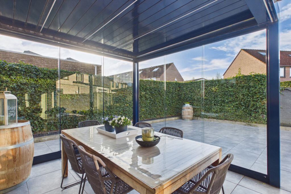 - Rondom voorzien van kunststof en aluminium kozijnen met dubbelglas (HR++) en rolluiken