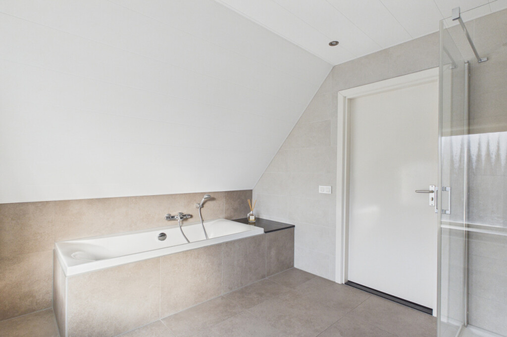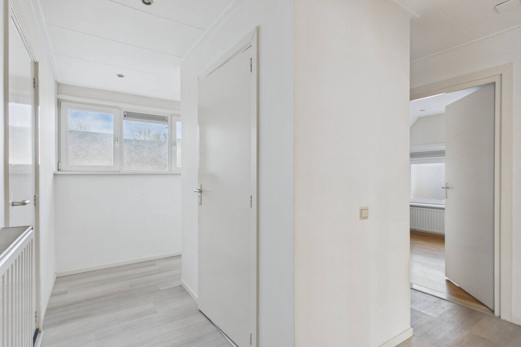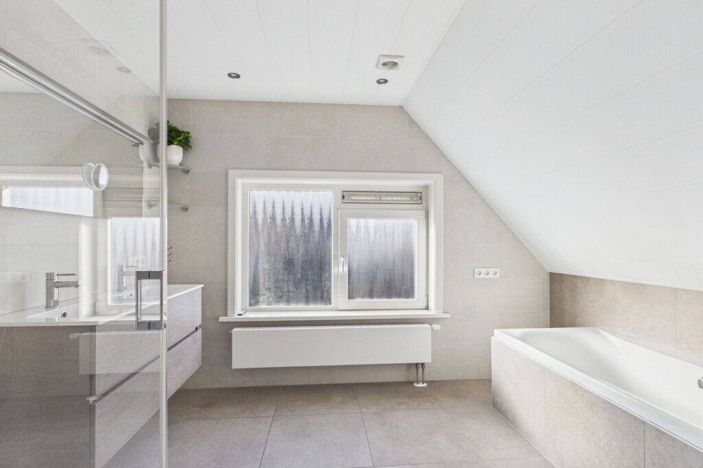 Op de eerste verdieping kom je op de overloop die toegang biedt tot vier slaapkamers. Deze kamers zijn stuk voor stuk geschikt als slaap-, werk- of hobbyruimte, waardoor je hier alle kanten op kunt. De moderne badkamer uit 2021 is compleet uitgevoerd met een ligbad, douchecabine en een dubbele wastafel met meubel. Op de overloop bevindt zich daarnaast een apart toilet, wat extra comfort biedt.