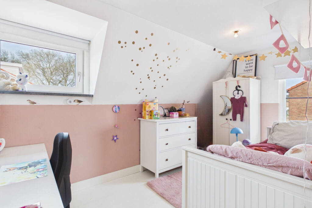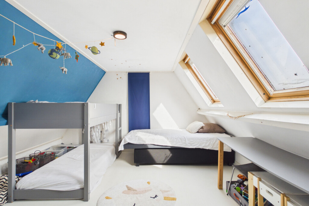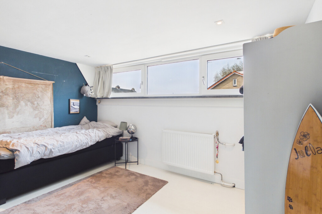 Via een vaste trap bereik je de tweede verdieping met een overloop, vierde slaapkamer en een ruime bergzolder. Ideaal als extra kamer, werkplek of opslag.