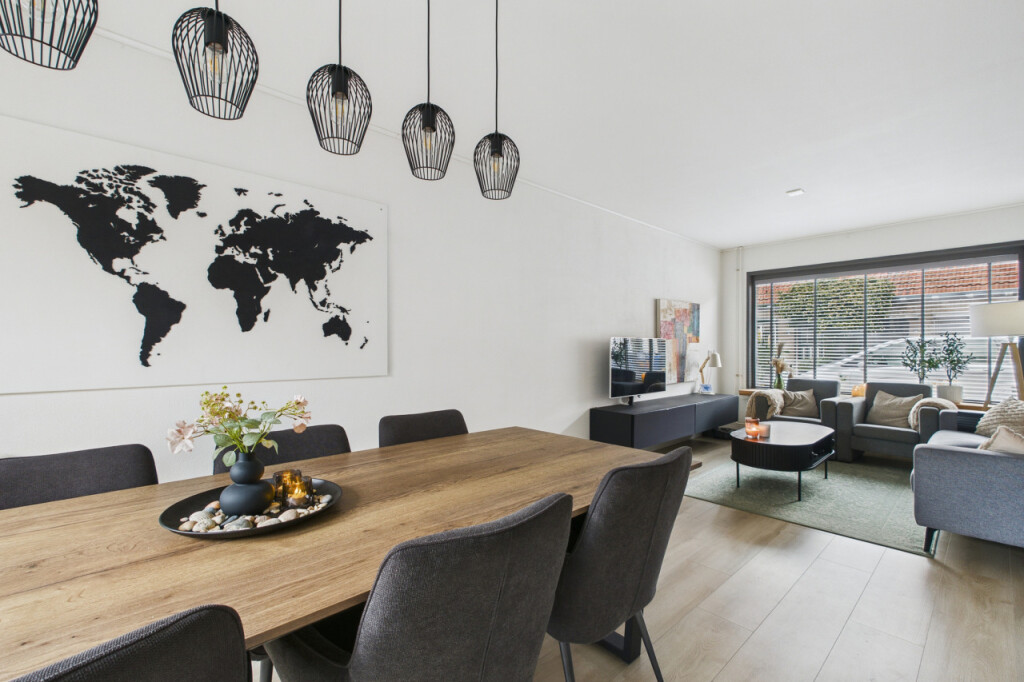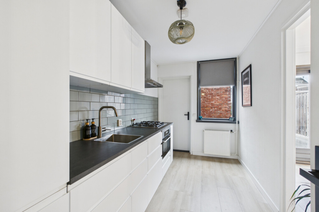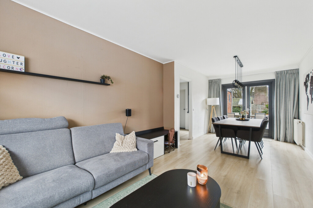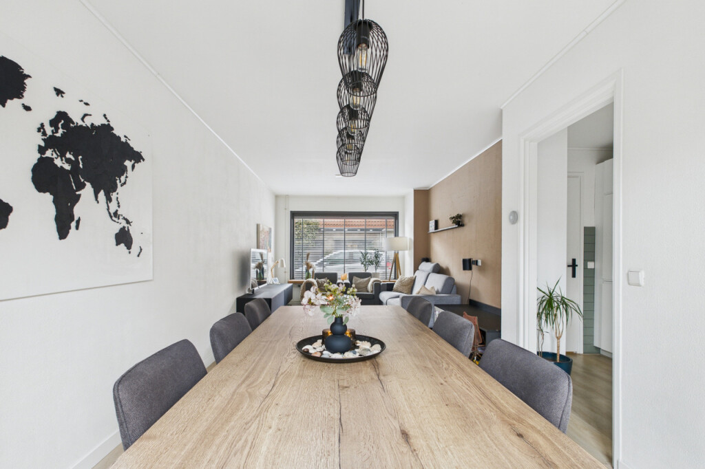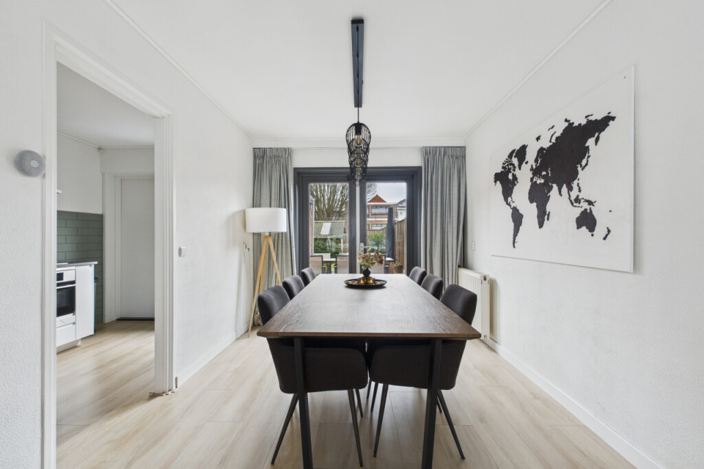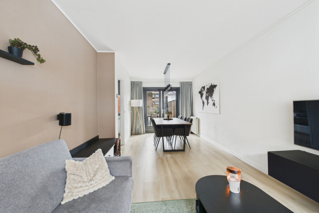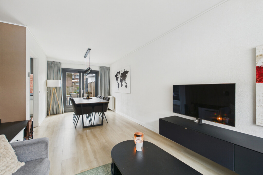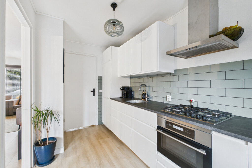 Je komt de woning binnen in de hal met meterkast en trapopgang naar de eerste verdieping, met handige trapkast. Vanuit de hal stap je de moderne, strakke halfopen keuken in die in 2023 is vernieuwd. De keuken is geplaatst in een rechte opstelling en voorzien van alle benodigde inbouwapparatuur, zoals een gaskookplaat, afzuigkap, koel- vriescombinatie, combi-oven, vaatwasser en spoelbak. Aansluitend bevindt zich de gezellige doorzonwoonkamer, waar het daglicht rijkelijk naar binnen valt. De openslaande tuindeuren zorgen voor een mooie verbinding met buiten en maken deze ruimte extra uitnodigend.