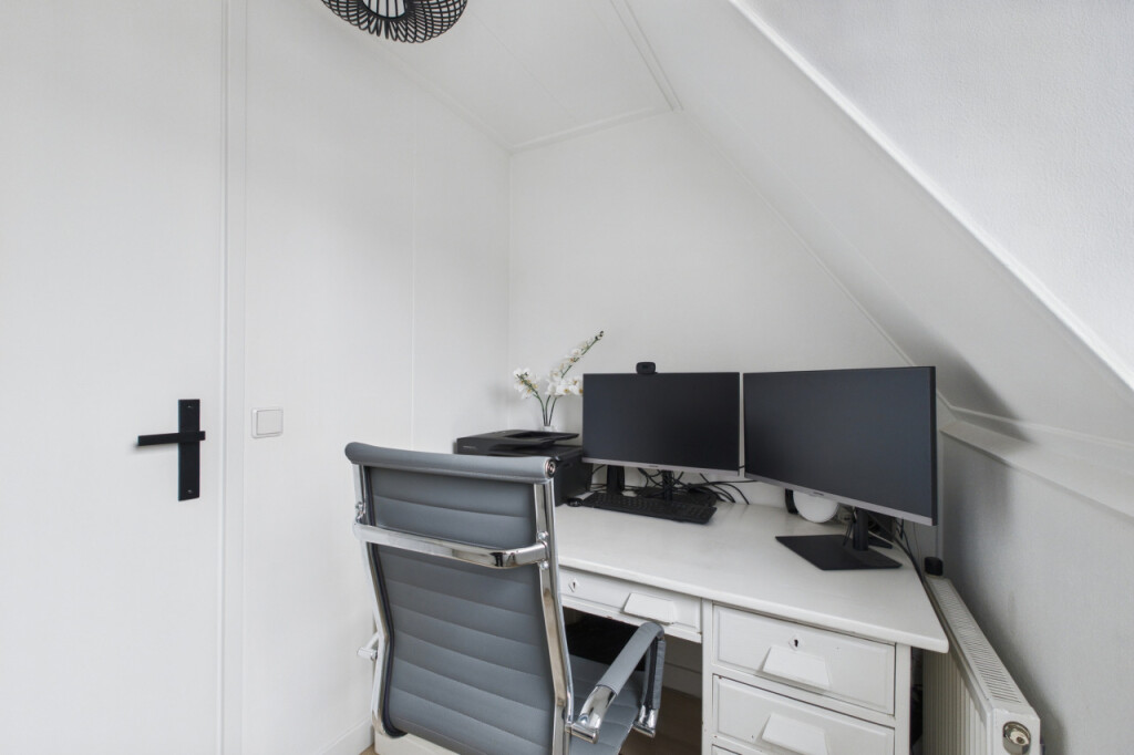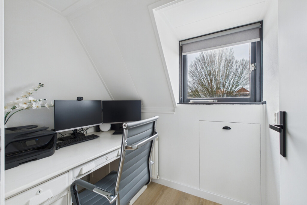 Op de eerste verdieping kom je uit op de overloop met vaste trap naar de tweede verdieping. Hier bevinden zich twee ruime en comfortabele slaapkamers met een dakkapel en daarnaast een extra kamer die perfect kan dienen als studeerkamer of thuiskantoor. Een ideale verdieping voor slapen, werken of studeren.