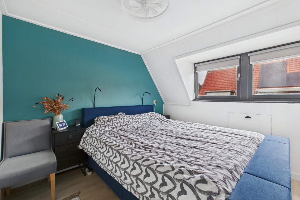 De tweede verdieping beschikt over een overloop met toegang tot een ruime derde slaapkamer, voorzien van een dakraam. Conform de NEN 2580-meetinstructie is deze verdieping vanwege het kleinere raam aangemerkt als overig inpandige ruimte. Deze ruimte biedt echter extra potentie: door het eenvoudig plaatsen van een groter dakraam kan de woonoppervlakte van de woning verder worden uitgebreid.