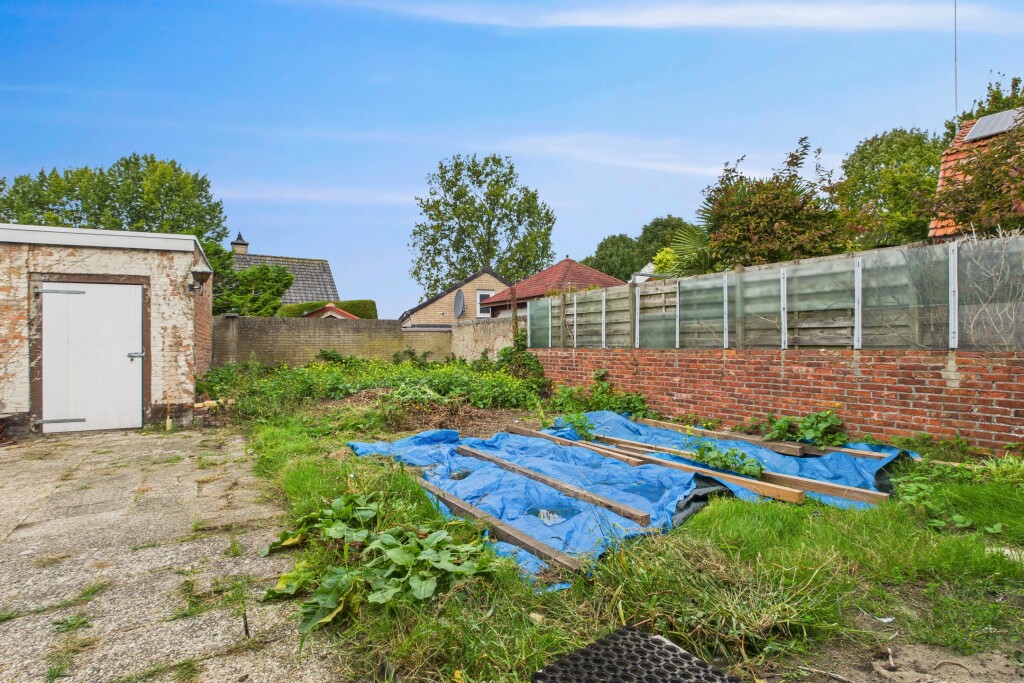 De tuin is deels aangelegd en deels nog in te richten, met achterom via een afsluitbare poort. Hier vind je een vrijstaande stenen berging (17 m²) met nieuwe betonvloer en de oude garage van maar liefst 30 m² (7,1 x 4,2 m), voorzien van vliering: ideaal voor opslag, hobby of klusruimte.