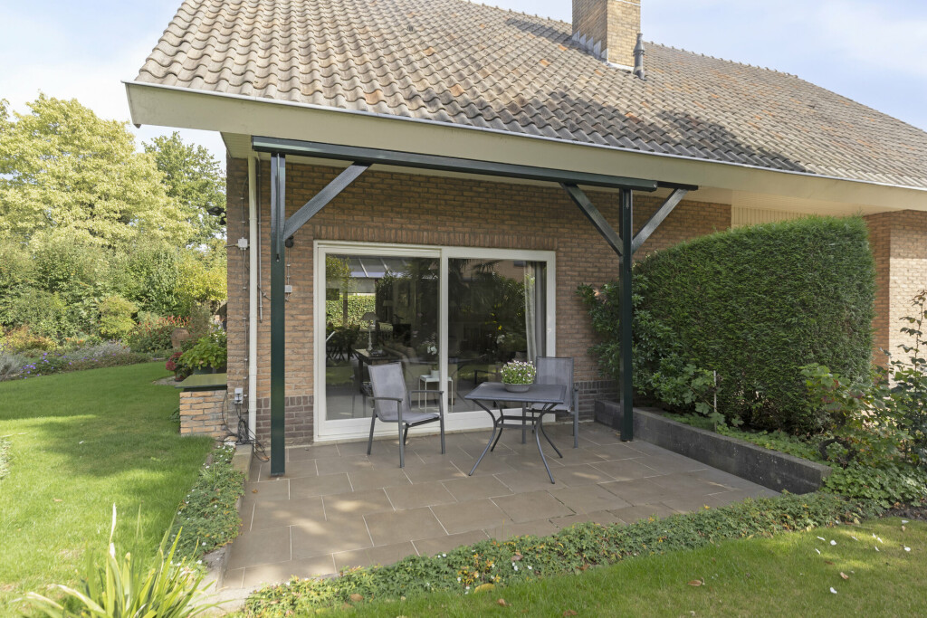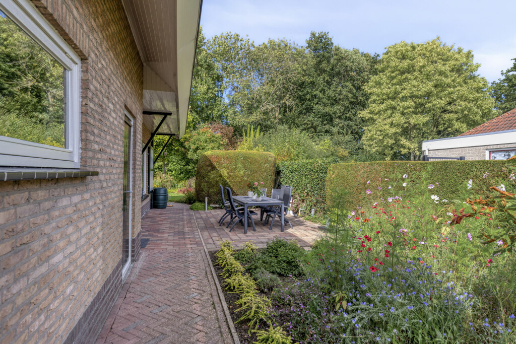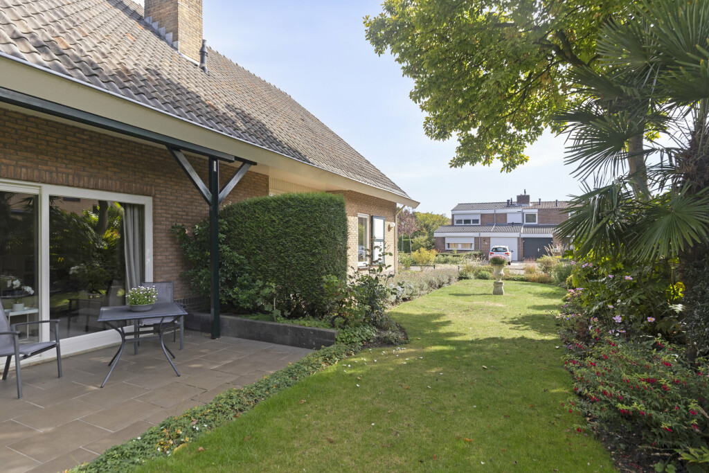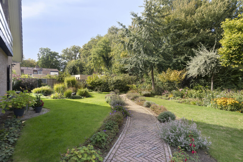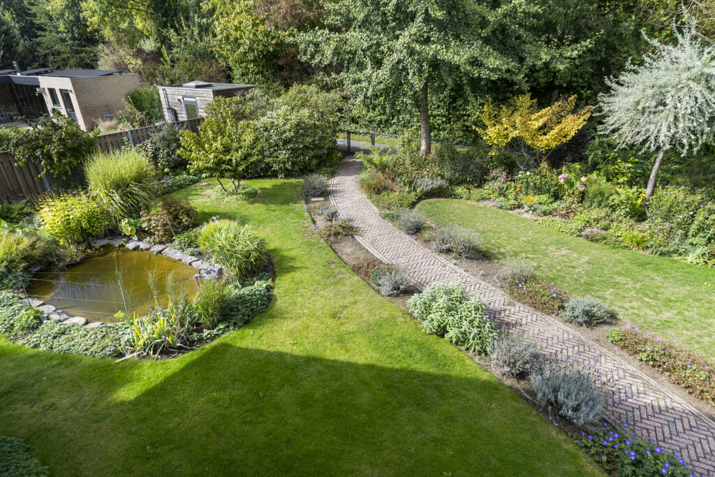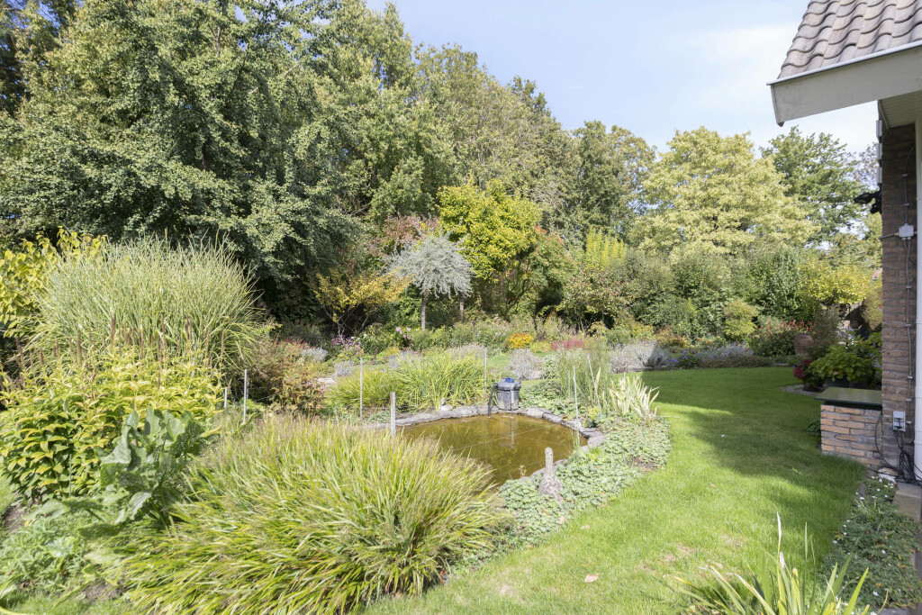 De achtertuin is een ware verrassing: een prachtig perceel van 812 m², fraai ingericht met graspartijen, zitplekken en een sfeervolle vijver welke zorgt voor een speels geheel.