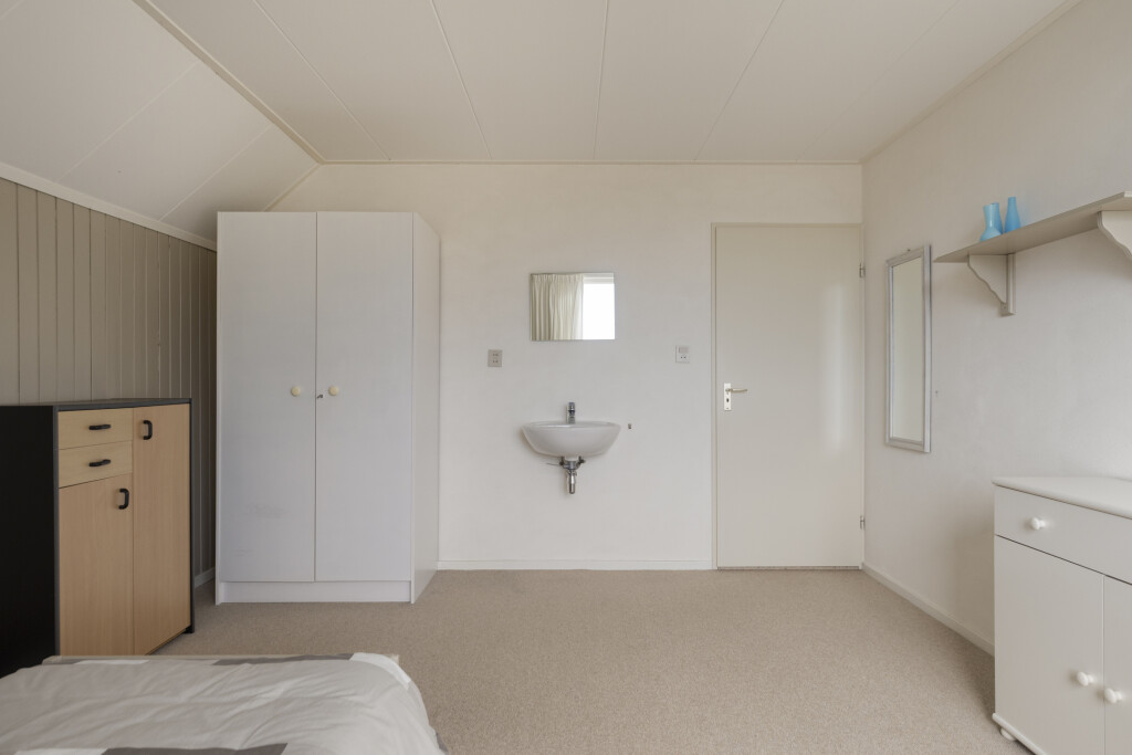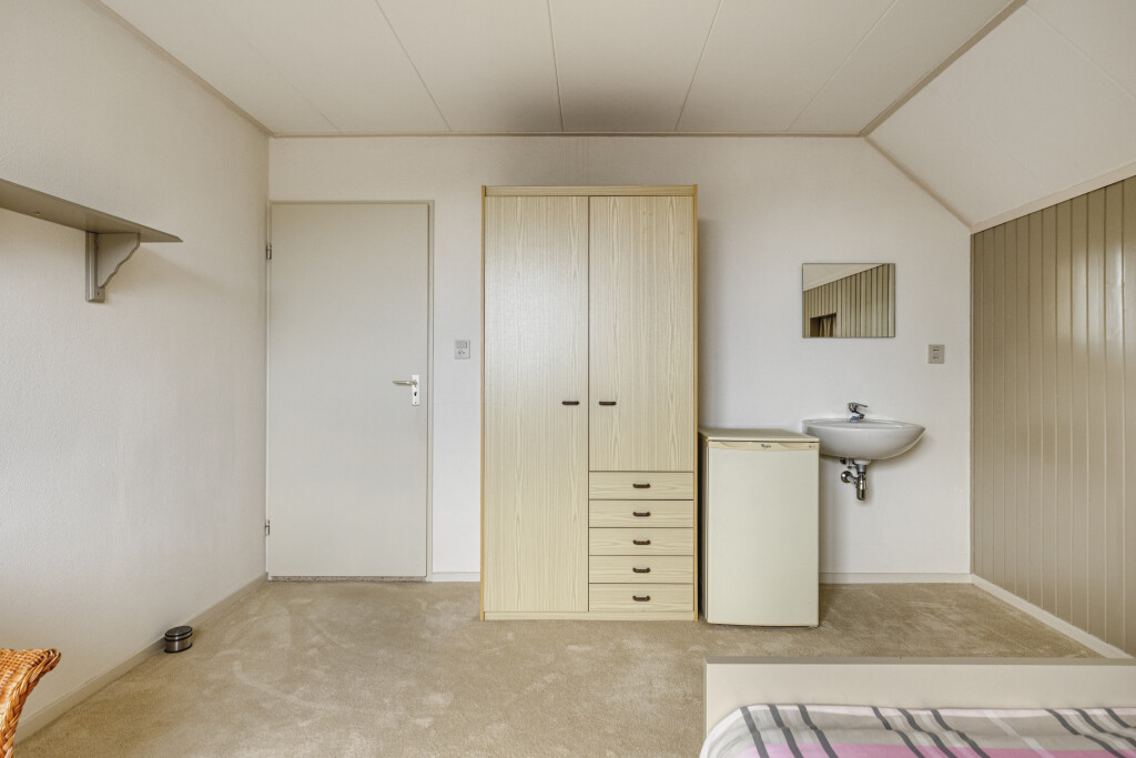 In alle kamers is praktische bergruimte aanwezig achter de schuine zijschotten.