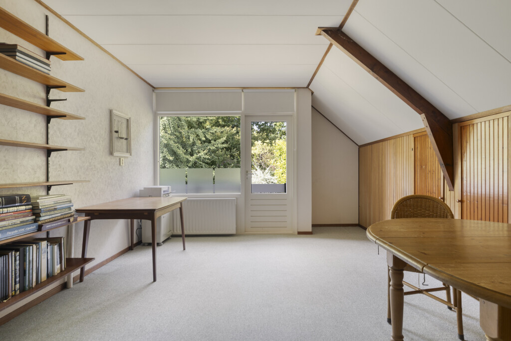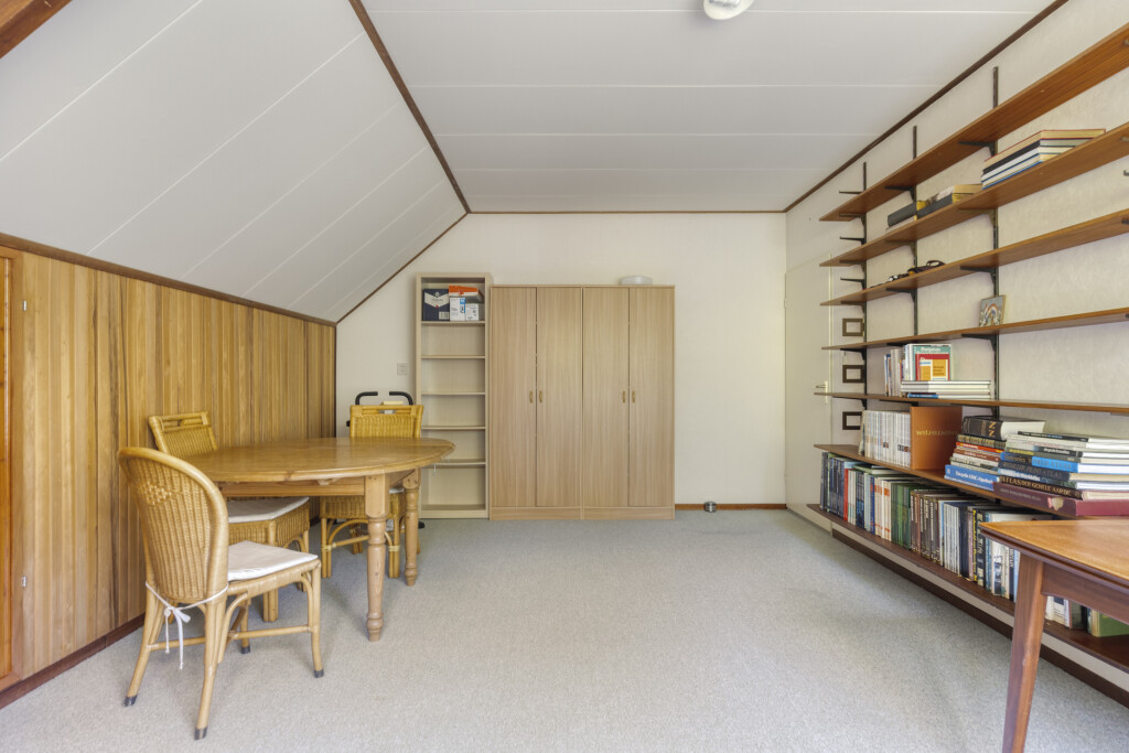 Via een vlizotrap is de zolder bereikbaar, ideaal als extra bergruimte voor seizoensspullen of decoratie.