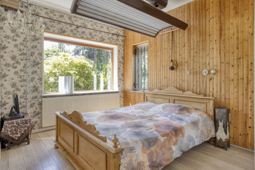 - Rondom voorzien van hardhouten kozijnen met grotendeels dubbelglas en rolluiken