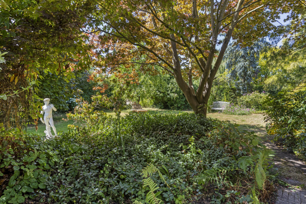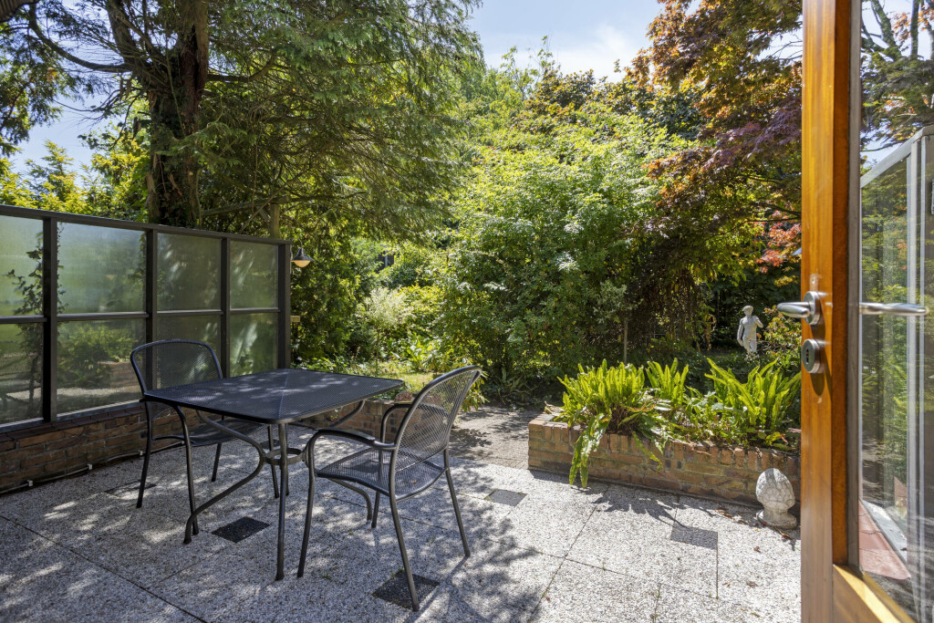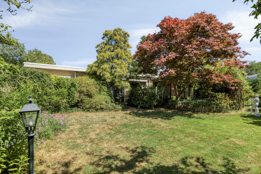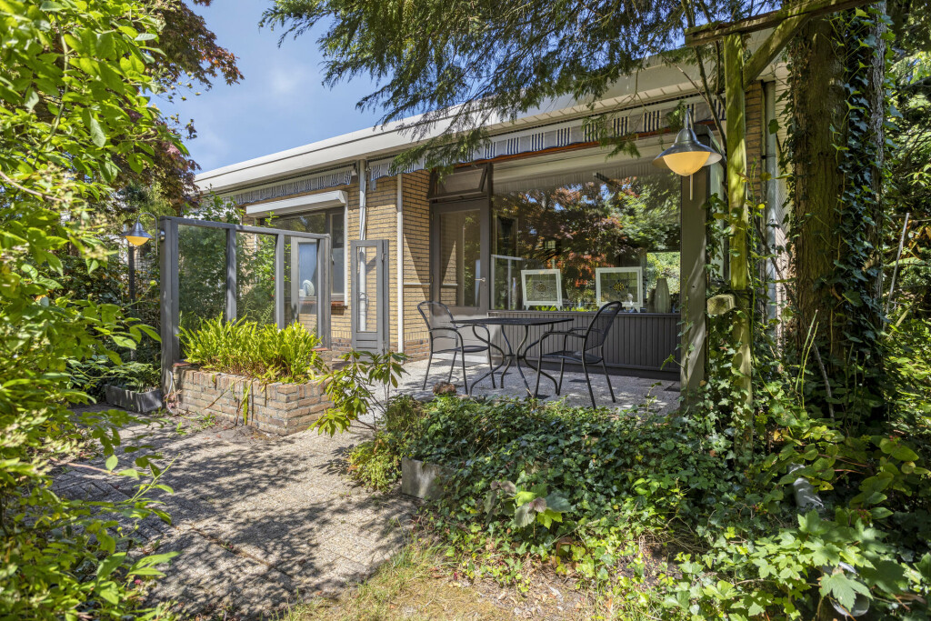 Buiten geniet je van een prachtig aangelegde tuin, een groene oase waar je in alle privacy kunt ontspannen. Op het terras is het heerlijk toeven met het ontspannende geluid van ruisende bomen! Of je nu een boek leest in de schaduw, tuiniert of wilt genieten van de zon - deze tuin biedt voor elk moment een perfecte plek. Ook is er een houten berging aanwezig; ideaal voor extra opslag. De oprit aan de voorzijde biedt plaats aan meerdere auto’s en leidt naar de garage.