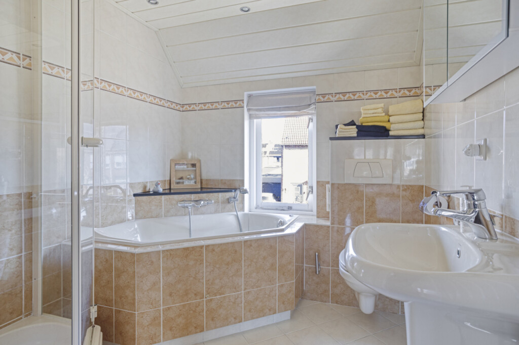 Op de eerste verdieping bevinden zich drie ruime slaapkamers, allen verzorgd afgewerkt en met een prettige lichtinval. De badkamer is compleet uitgevoerd en voorzien van een douche, wastafel en tweede toilet â comfortabel en functioneel voor dagelijks gebruik.