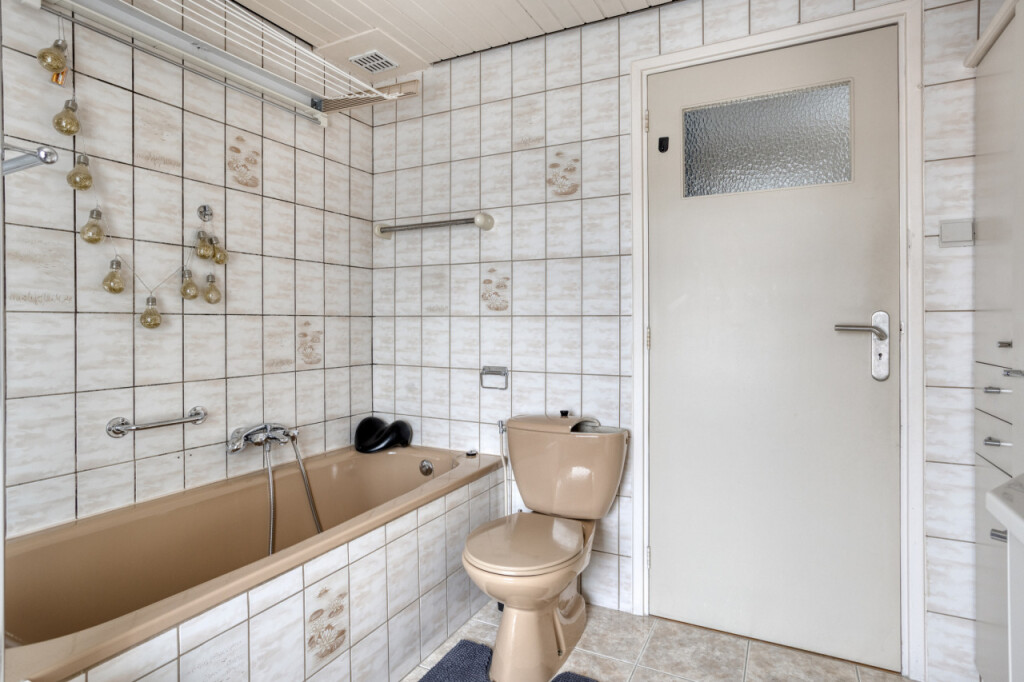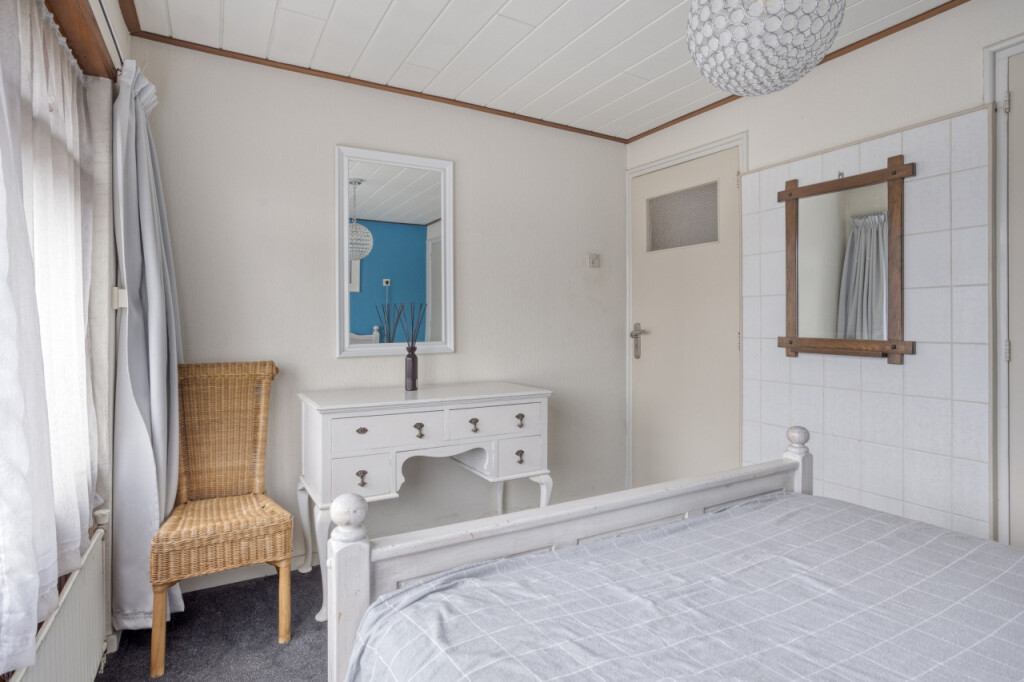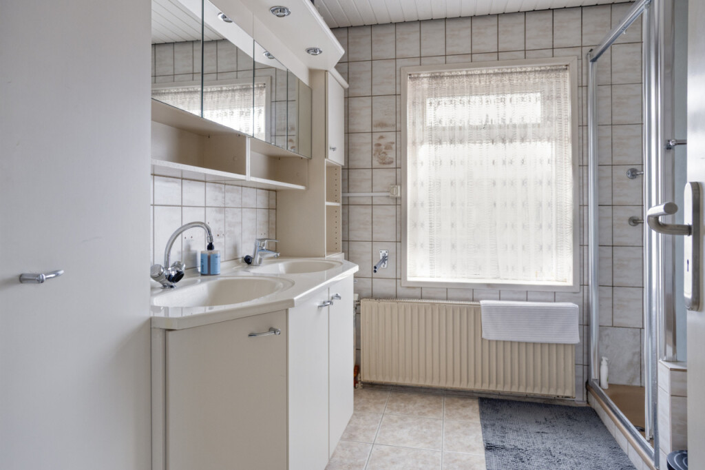 Op de eerste verdieping vind je drie slaapkamers, waarvan twee met een vaste kast. De badkamer is compleet met ligbad, douche, toilet en dubbele wastafel met meubel. Daarnaast is er een aparte wasruimte aanwezig, waardoor alles netjes georganiseerd kan blijven.