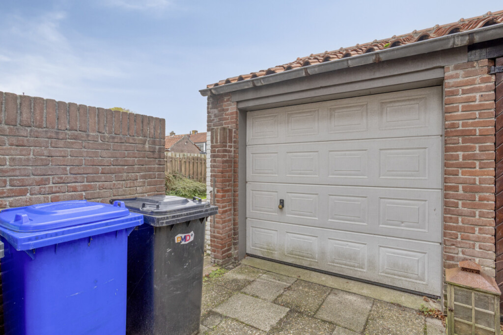 De tuin ligt op het westen en is zonnig en onderhoudsvriendelijk. Een terras nodigt uit tot ontspannen, terwijl het gazon en de border met groen ruimte bieden voor spelende kinderen of een moestuintje. De ruime, stenen vrijstaande garage met elektrische deur biedt veel praktische mogelijkheden en de extra lange oprit zorgt voor volop parkeerplek.