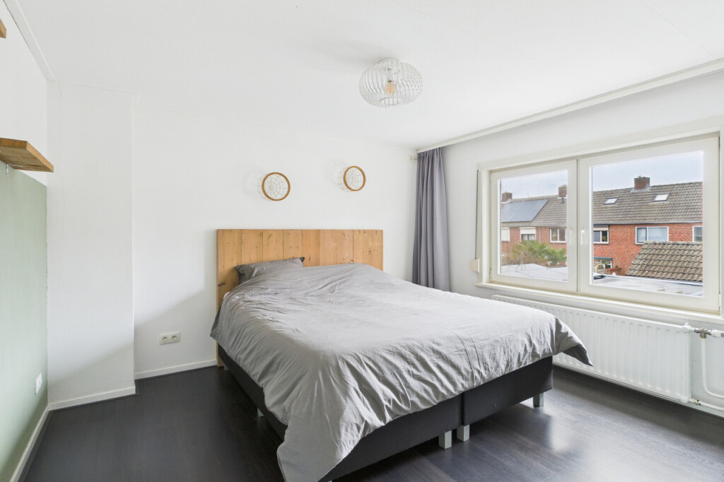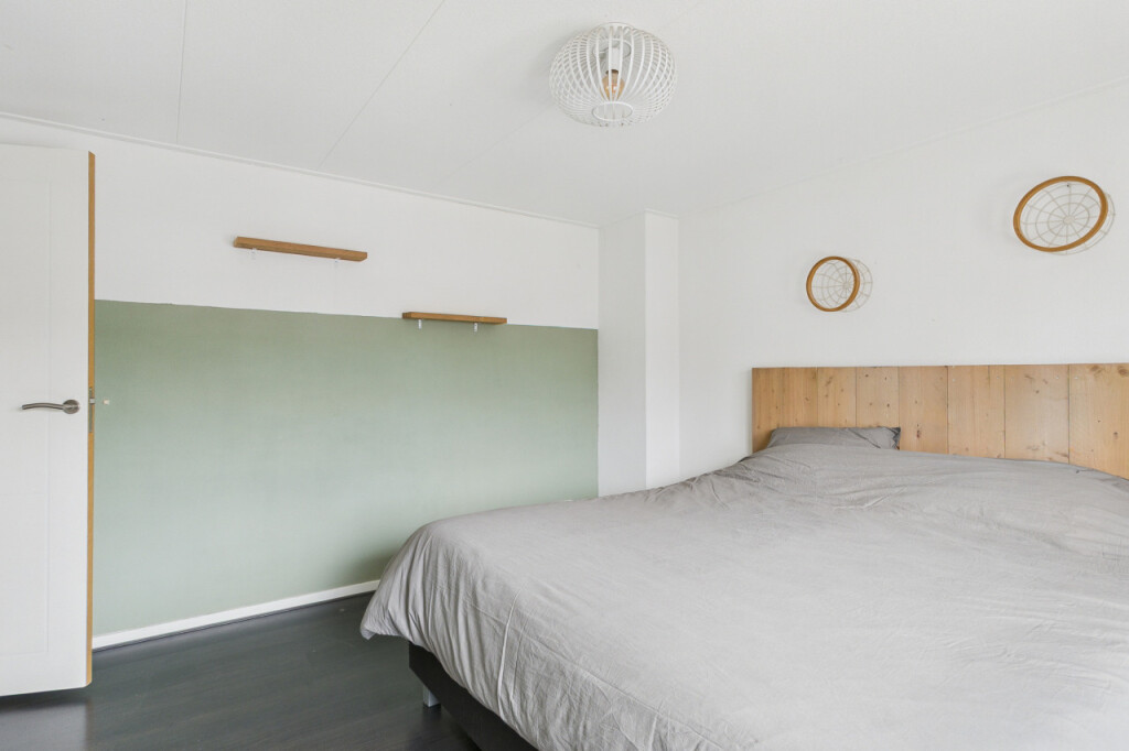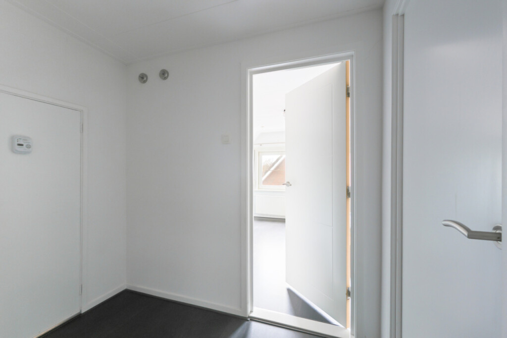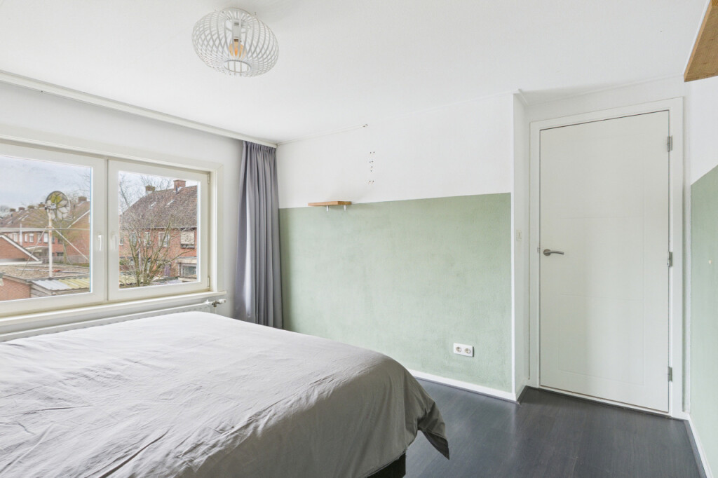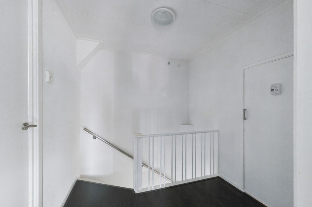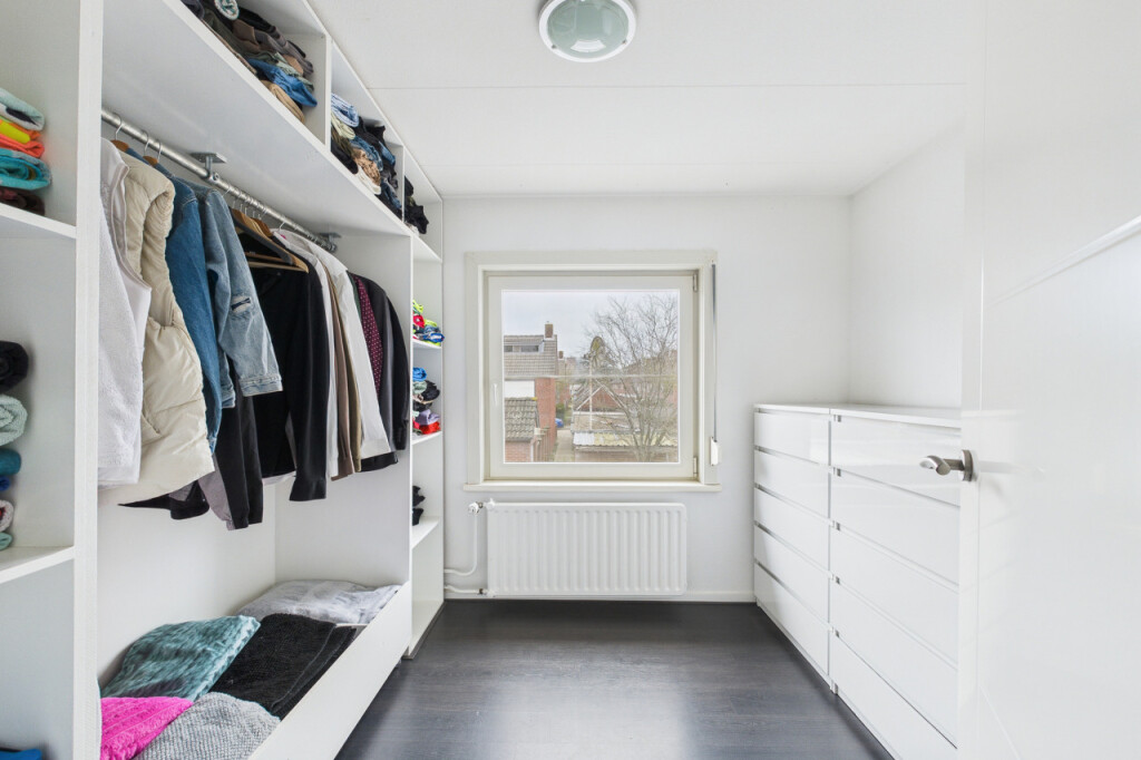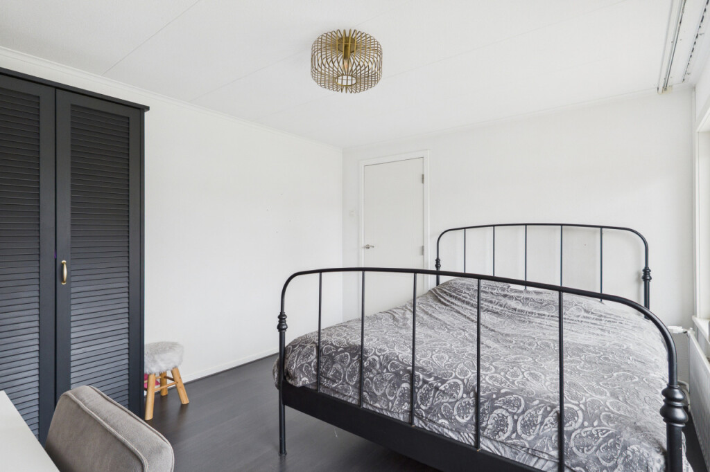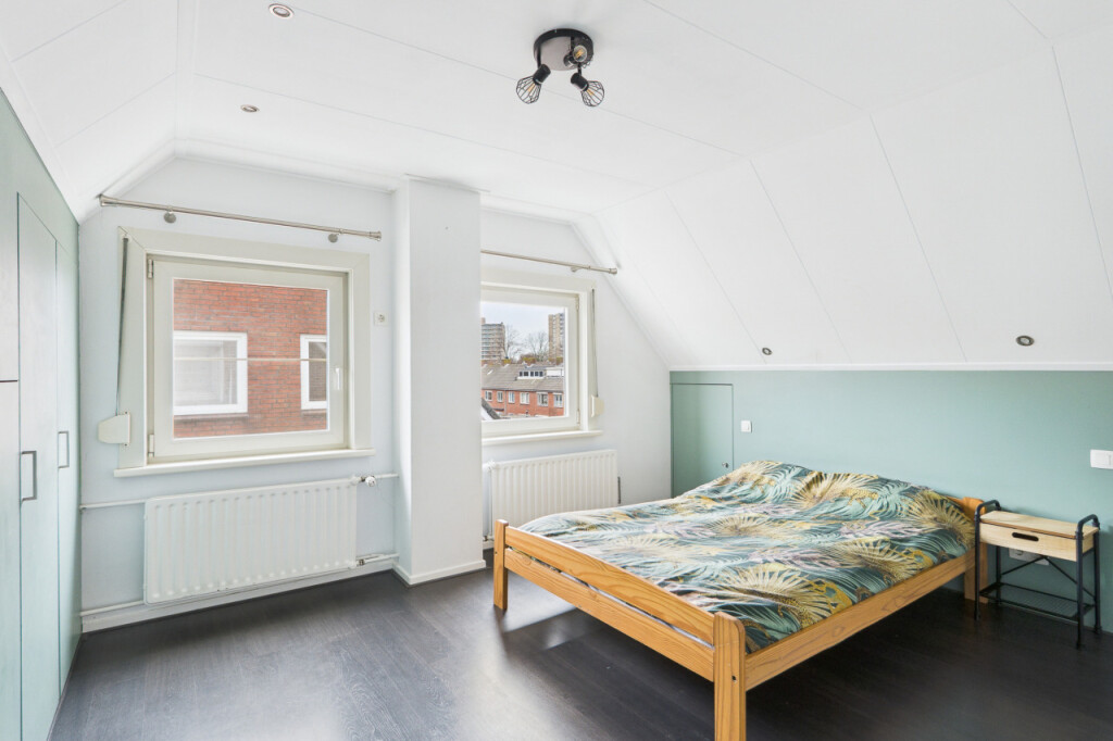 De tweede verdieping biedt verrassend veel ruimte. Op de overloop vind je een berging en een aparte witgoedruimte. Daarnaast is hier de ruime vierde slaapkamer, voorzien van een vaste kastenwand, wat deze verdieping zeer geschikt maakt als extra slaap-, werk- of hobbyruimte.