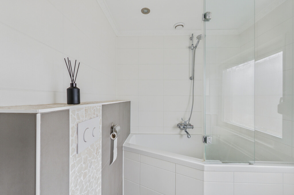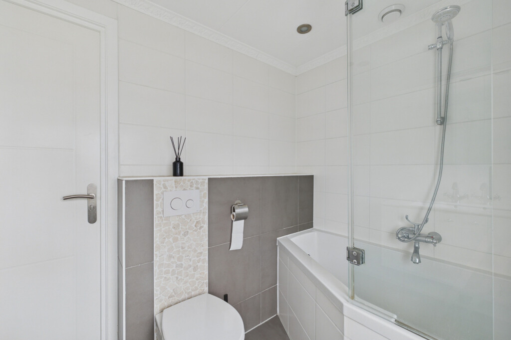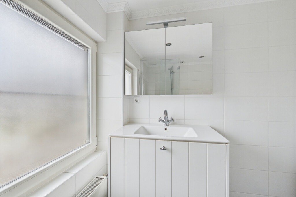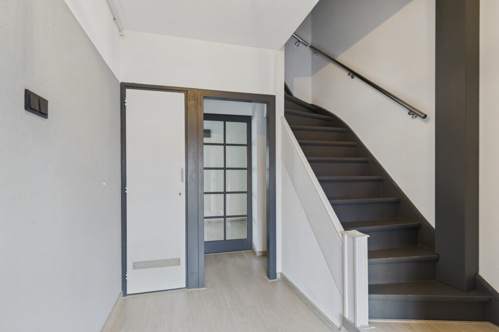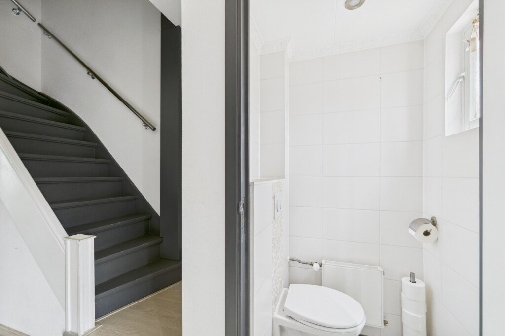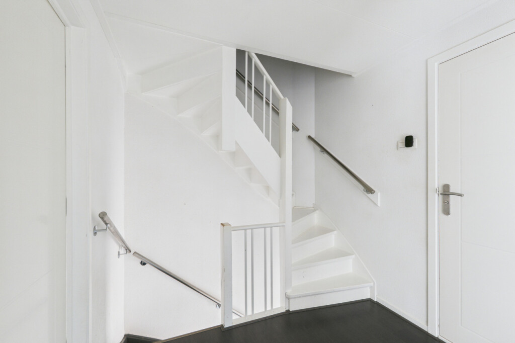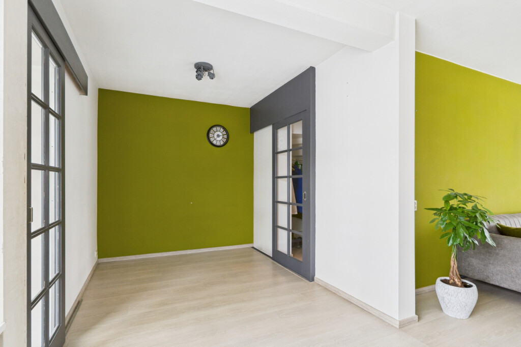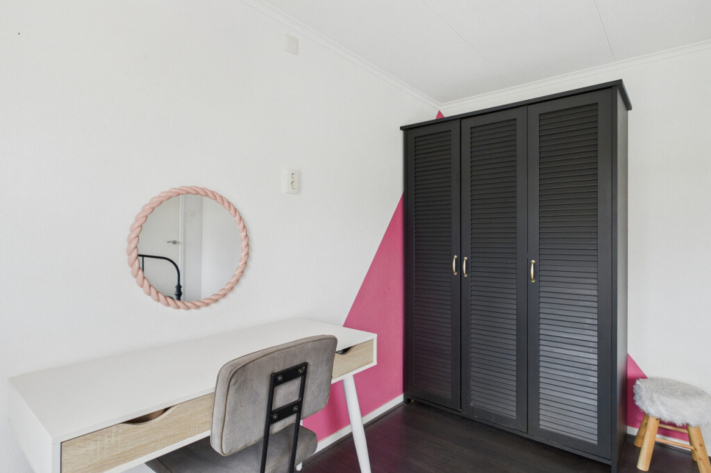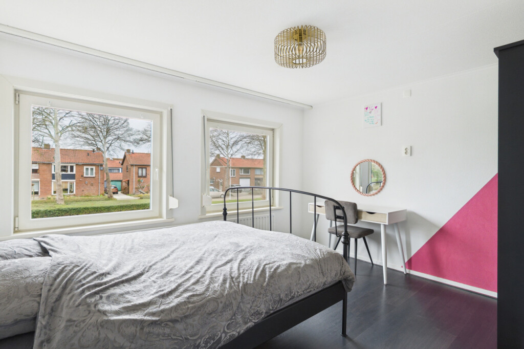 De tweede verdieping biedt verrassend veel ruimte. Op de overloop vind je een berging en een aparte witgoedruimte. Daarnaast is hier de ruime vierde slaapkamer, voorzien van een vaste kastenwand, wat deze verdieping zeer geschikt maakt als extra slaap-, werk- of hobbyruimte.