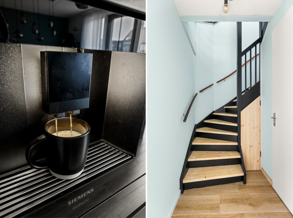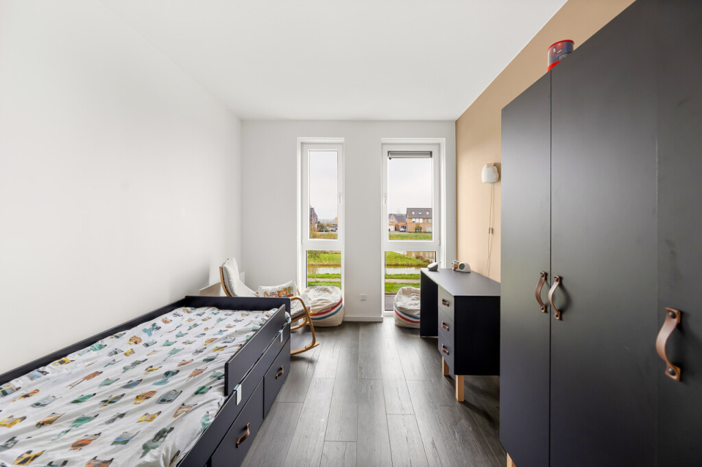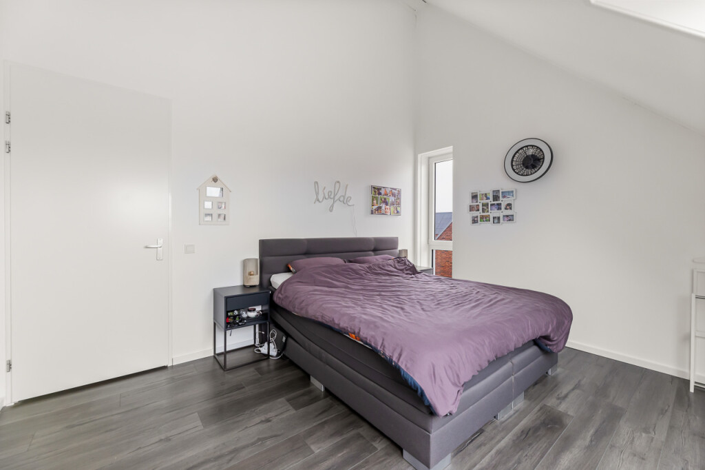 Via de vaste trap bereik je de tweede verdieping, met nog eens twee slaapkamers. Eén van deze kamers heeft een handige inloopkast — ideaal als hoofdslaapkamer of als ruime werkplek. Daarnaast is er een aparte stookruimte waar alle techniek overzichtelijk bij elkaar staat.