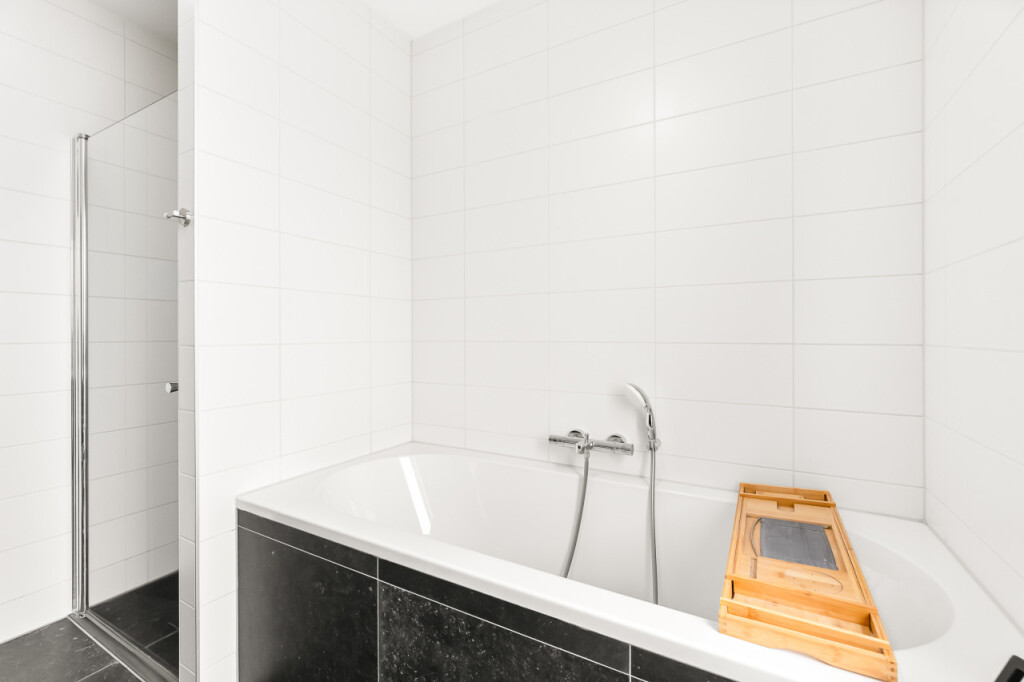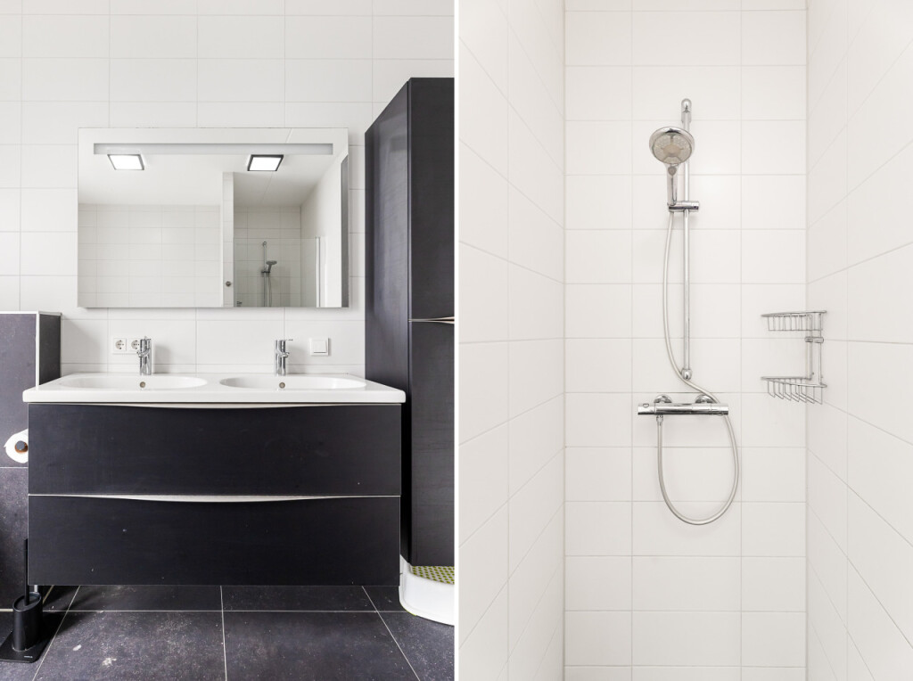 Boven geeft de overloop toegang tot drie slaapkamers, allemaal ruim genoeg voor een bed en kastruimte. De badkamer is compleet uitgevoerd met ligbad, douche, dubbele wastafel en toilet, zodat deze verdieping volledig voorziet in dagelijks comfort.