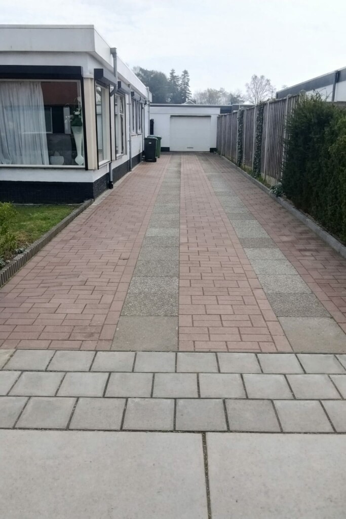 De tuin rondom de woning en is voorzien van meerdere terrassen, bestrating en hekwerk. Daarnaast zijn er twee opritten en een garage met berging (daken vernieuwd).